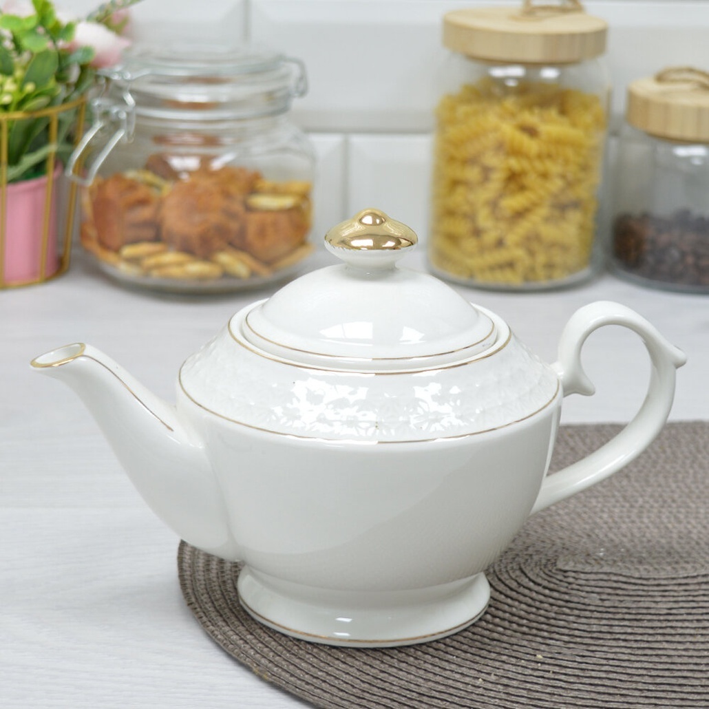 Чайник объемом 0,85 литра подойдёт для заваривания как традиционного черного или зеленого чая, так и травяных сборов. Фарфоровый корпус долго удерживает тепло, позволяя насладиться напитком в течение всей беседы. Удобная ручка и изогнутый носик обеспечивают комфортное и аккуратное наливание без подтеков.