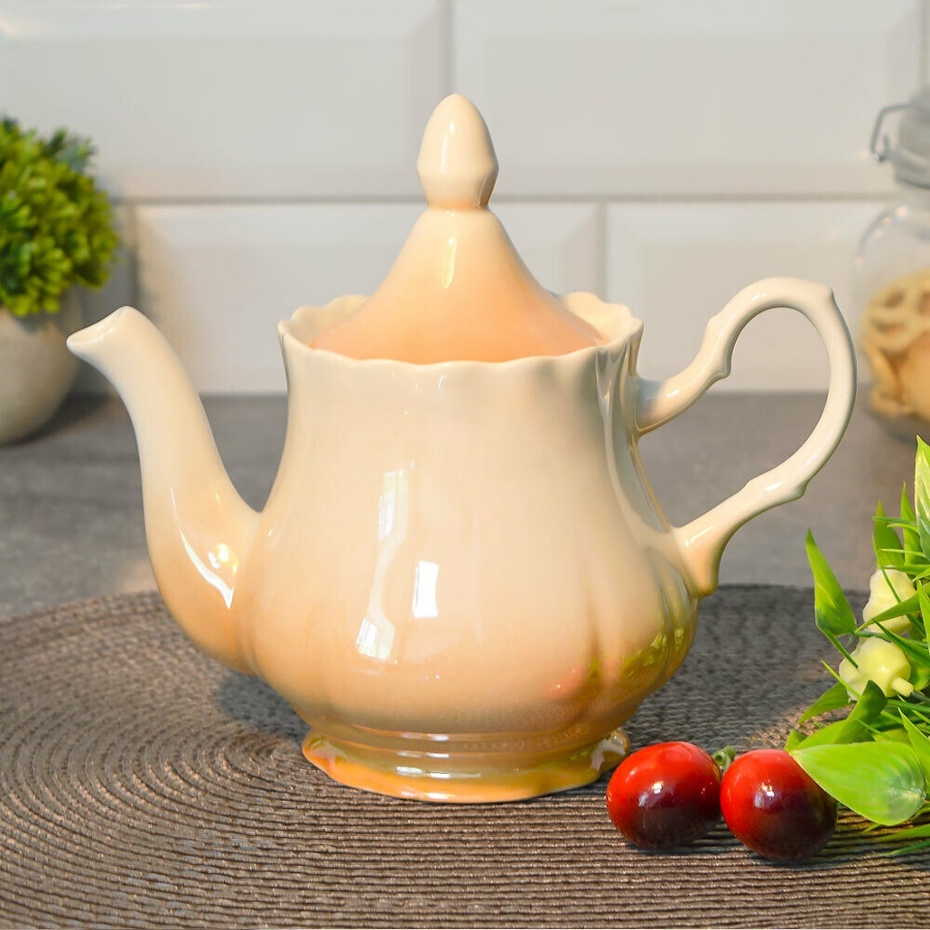 Этот заварочный чайник объемом 800 мл выполнен из высококачественного фарфора и станет идеальным дополнением к вашему чайному сервизу. Его элегантная форма Романс с плавными линиями и нежным кремовым оттенком создаст уютную атмосферу на вашей кухне. Чайник не только красив, но и удобен в использовании благодаря своему узкому носику, который обеспечивает точное наливание без проливаний.
