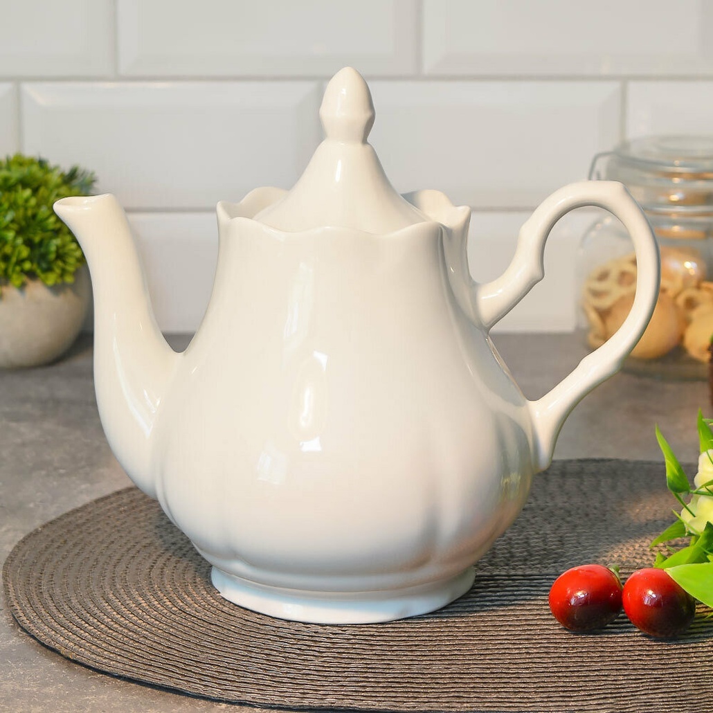 Чайник имеет белый цвет без узоров, что делает его универсальным для любого стиля сервировки. Его размеры и форма позволяют удобно наливать чай, а также легко хранить. Этот чайник станет отличным дополнением к вашей кухонной посуде и подарит вам множество приятных моментов за чашкой чая.
