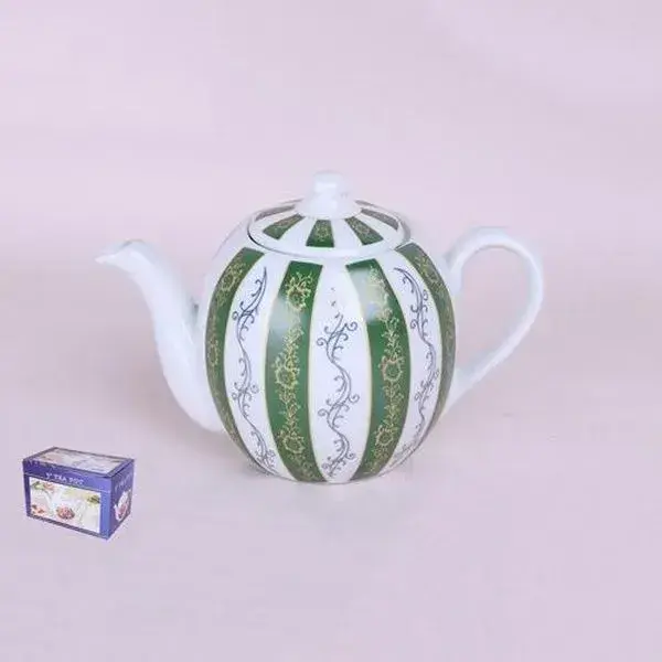 Керамический заварочный чайник с авторским дизайном сочетает в себе эстетику и функциональность. Зеленые и белые полосы с золотым декором создают атмосферу изысканности, превращая процесс заваривания в настоящее удовольствие.