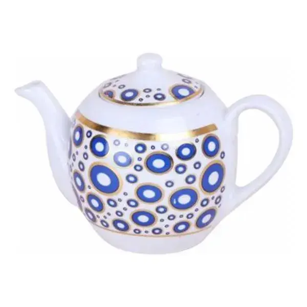 Фарфоровый заварочный чайник объемом 600 мл создан для ценителей изысканного чаепития. Сочетание белоснежного фарфора с сине-золотым декором добавит утонченности вашему столу, а продуманная конструкция обеспечит удобство использования.