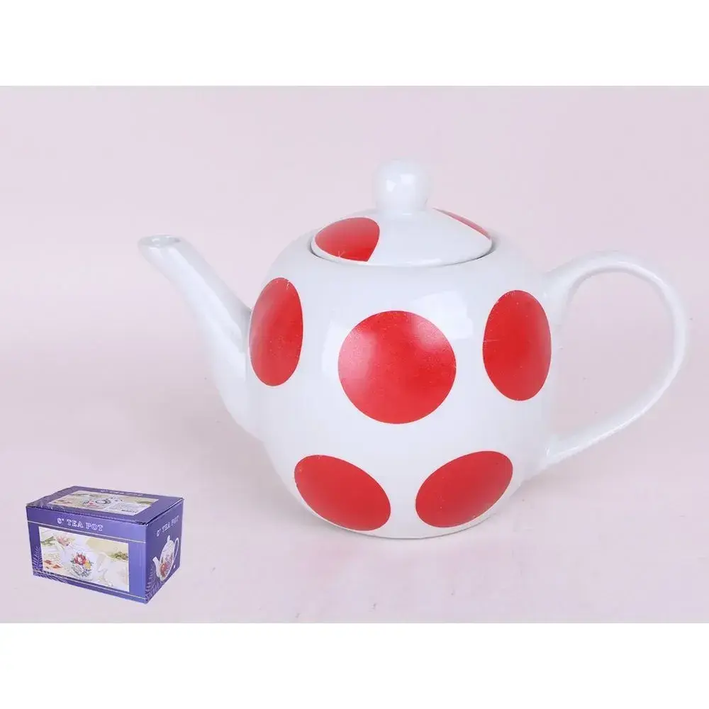 Чайник заварочный керамический 800 мл, белый с красными кругами, крышка в комплекте
