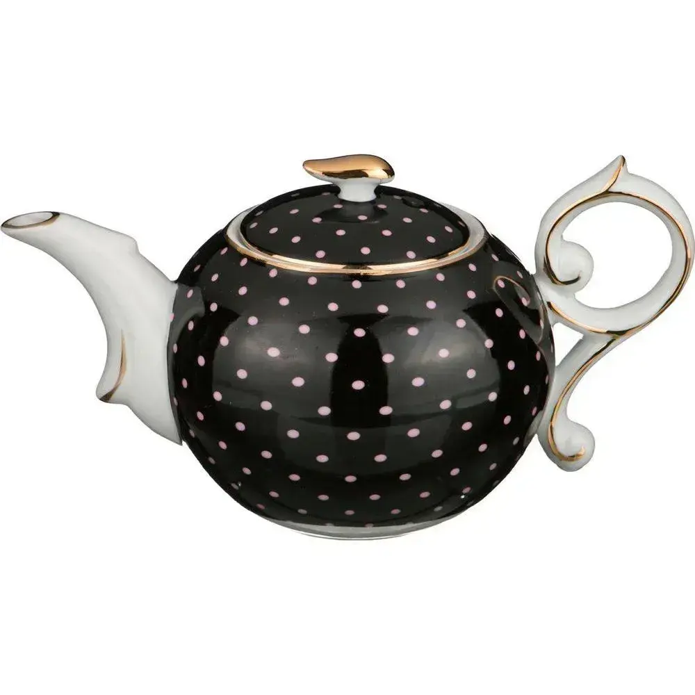 Чайник заварочный черный с розовым горошком, 300 мл, эргономичная ручка, крышка с декором