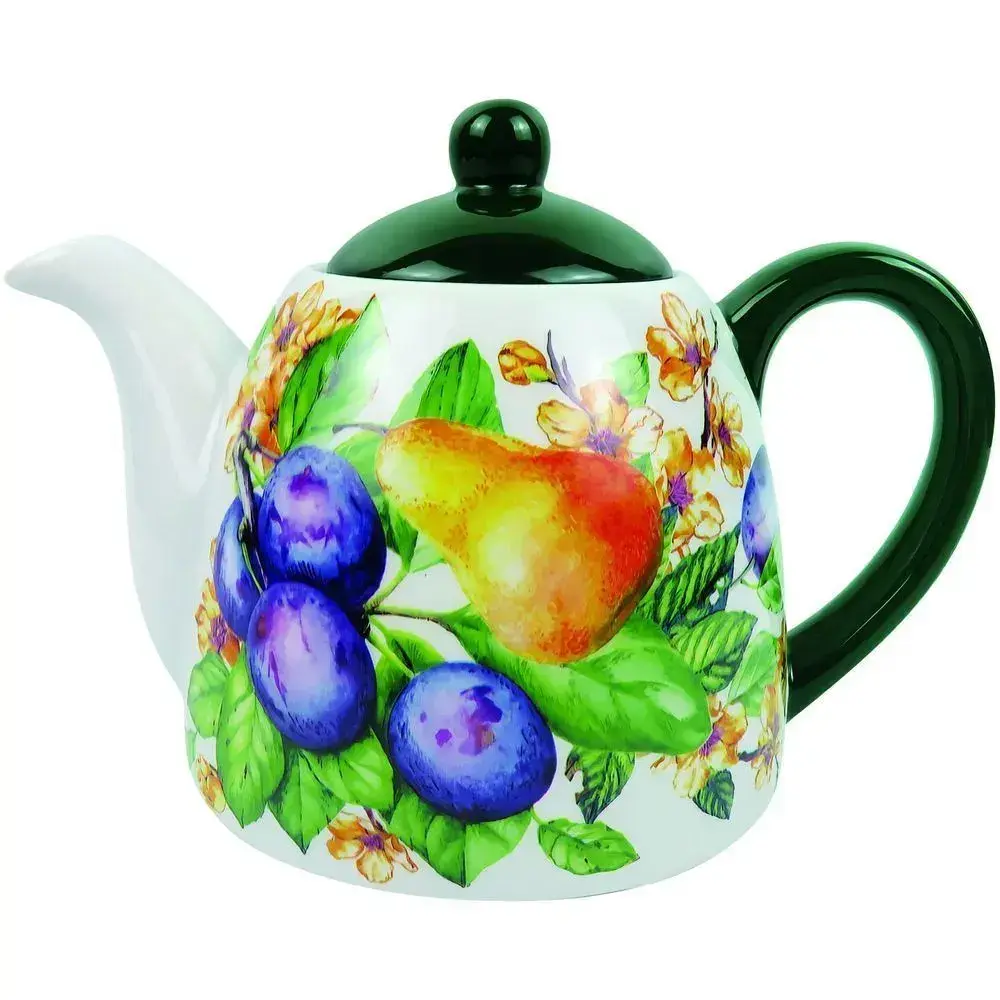 Керамический заварочный чайник сочетает в себе изысканный дизайн и практичность для ежедневного использования. Яркий декор с фруктово-растительными мотивами создаёт атмосферу уюта и превращает процесс заваривания в эстетическое удовольствие.