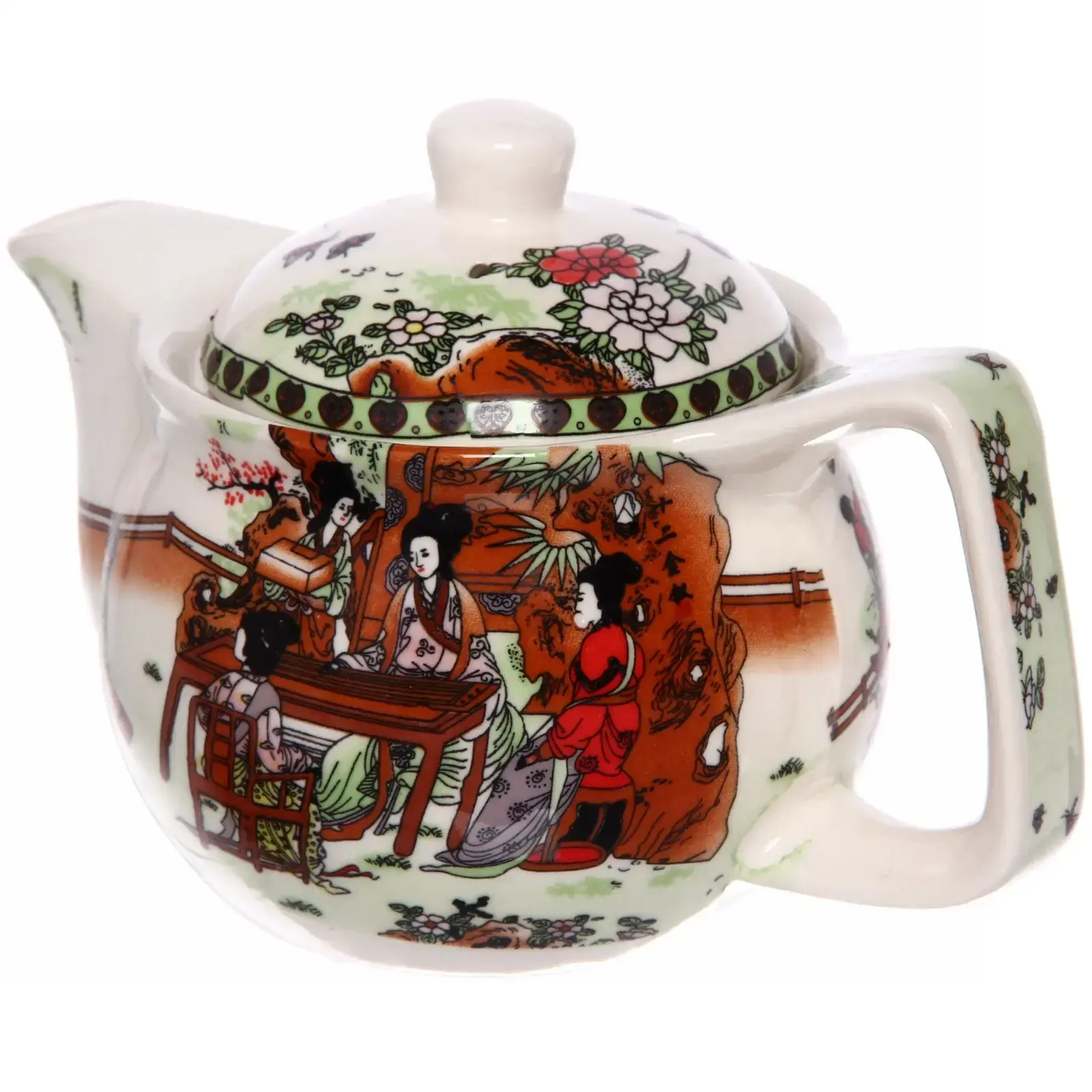 Чайник заварочный керамический 350мл с ситом, "Девушки в саду", белый/цветной