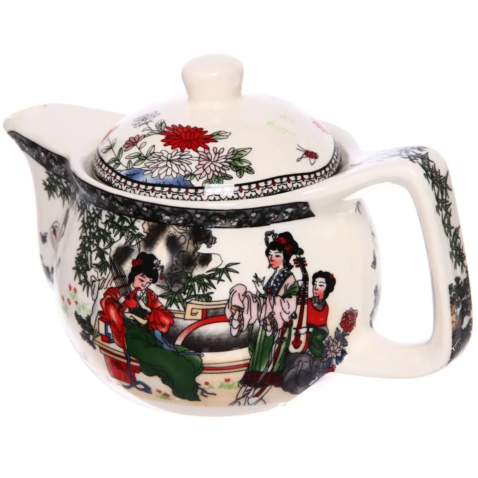 Керамический заварочный чайник с ситом создан для истинных ценителей чайных традиций. Изящная ручная роспись с изображением гейш и цветочными мотивами превращает процесс заваривания в эстетическое удовольствие.