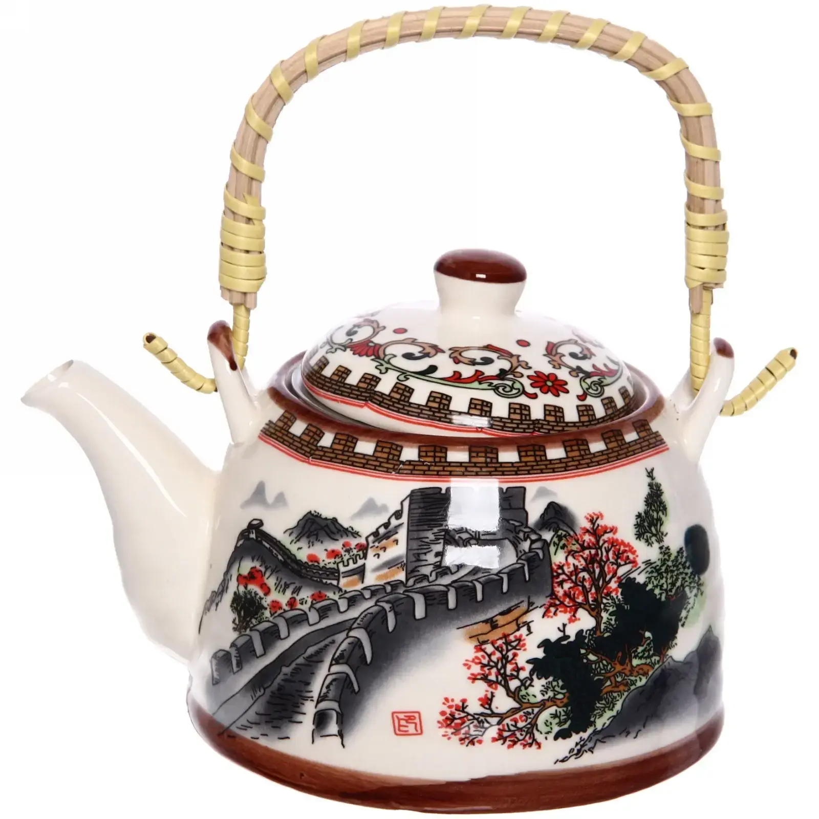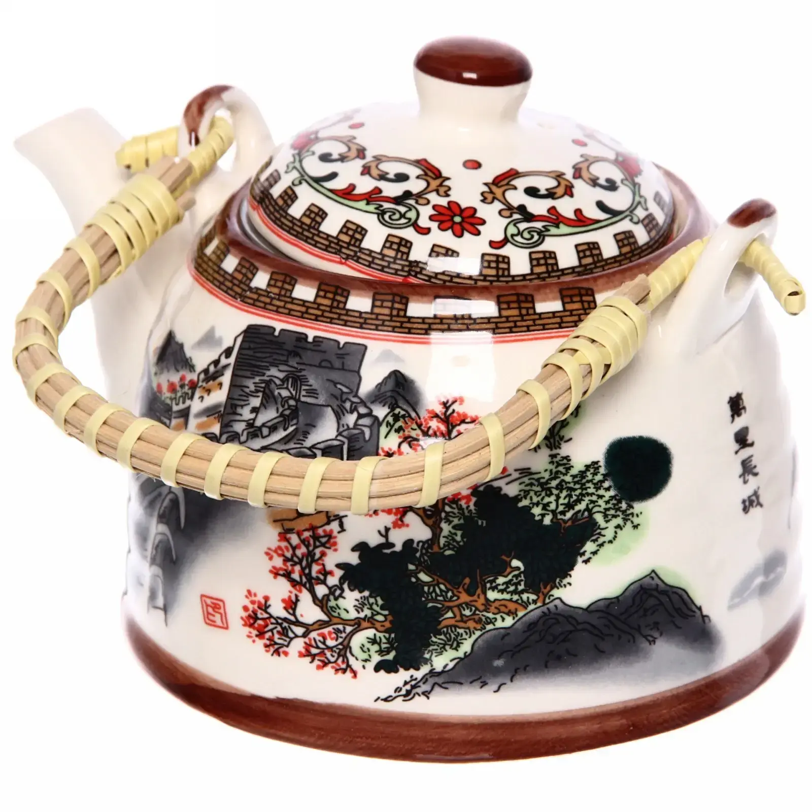 Уникальные художественные элементы с изображением Великой Китайской стены и горных пейзажей созданы вручную методом надглазурной росписи. Устойчивое к нагреву покрытие сохраняет яркость красок даже при постоянном использовании. Компактные размеры позволяют хранить чайник на кухонной полке или использовать как элемент сервировки.
