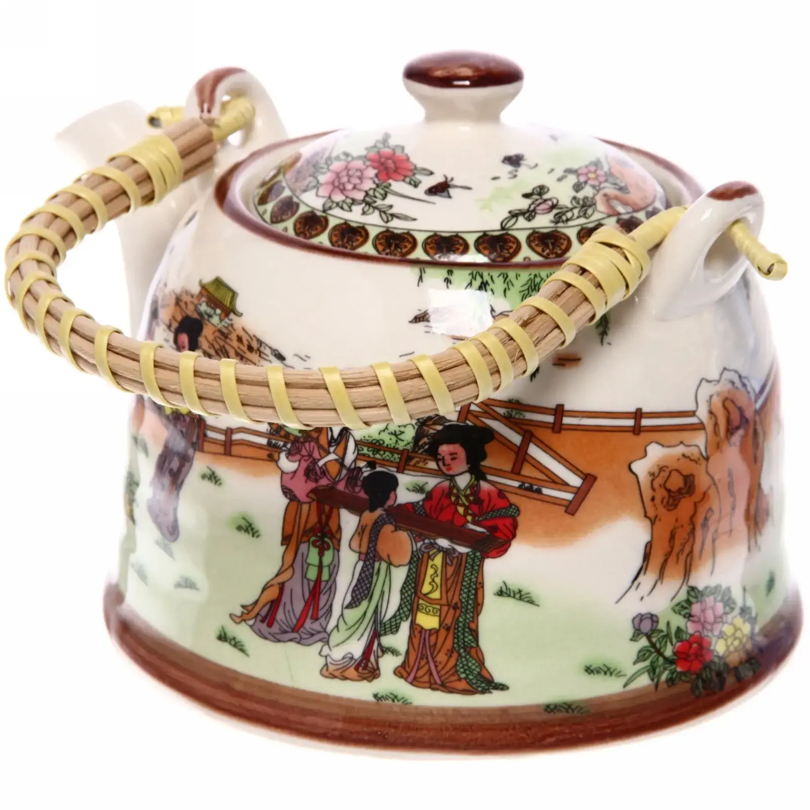 Керамика высшего качества гарантирует долговечность использования. Плетеная ручка не только добавляет особый шарм изделию, но и защищает руки от ожогов. Уникальный декор «Гейши» превращает обычный чайник в настоящее произведение искусства.