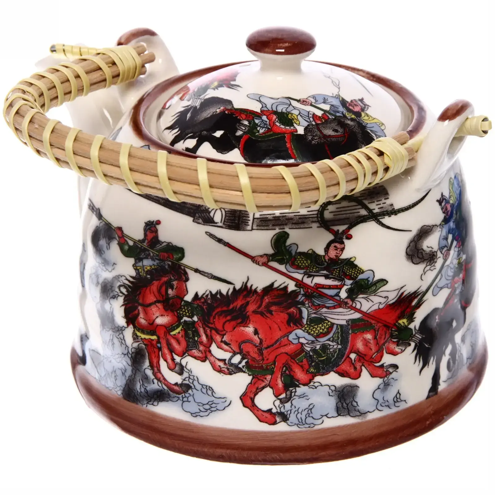 Погрузитесь в атмосферу древних традиций с керамическим чайником, где каждая деталь продумана для вашего комфорта. Уникальная ручная роспись с изображением всадников превратит чаепитие в эстетическое наслаждение, а продуманная конструкция обеспечит удобство использования.