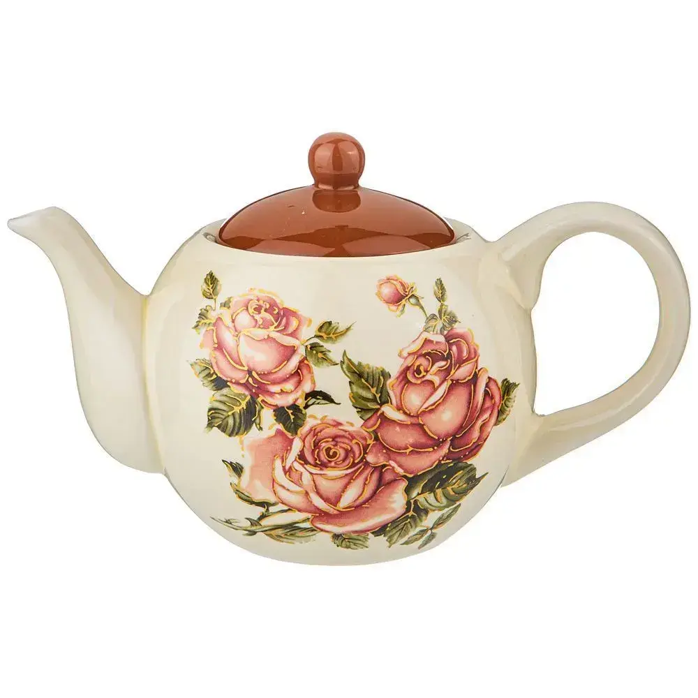 Керамический заварочный чайник с цветочным дизайном создан для ценителей уютных чайных церемоний. Нежная роспись в виде розовых бутонов и листьев превратит процесс заваривания в наслаждение красотой.