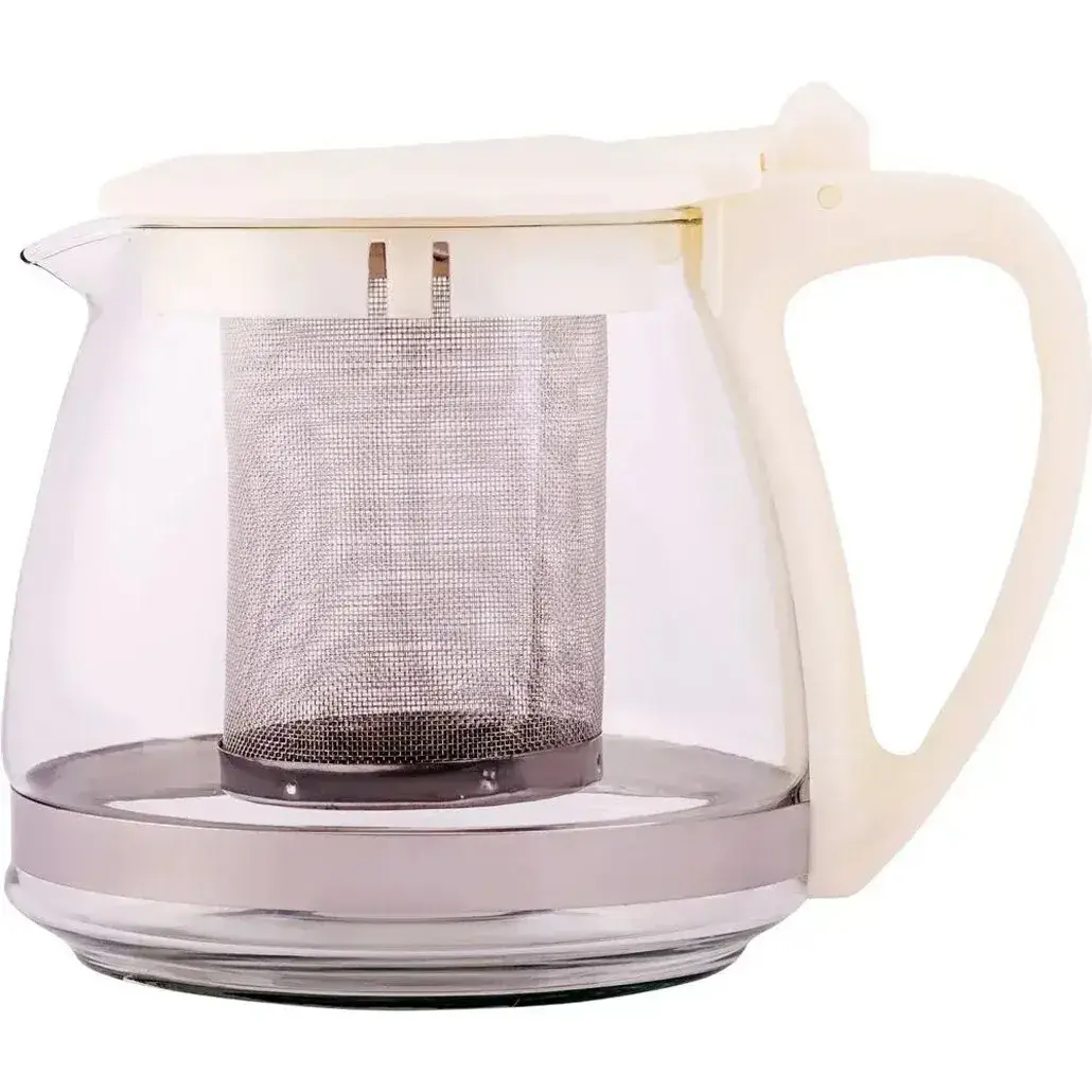 Чайник заварочный стеклянный 0,7л с фильтром, бежевый, ТМ Appetite