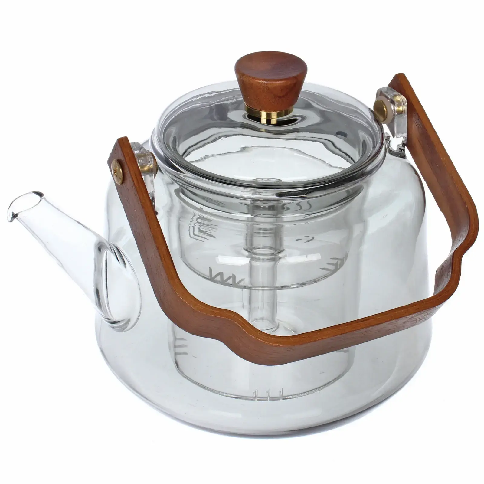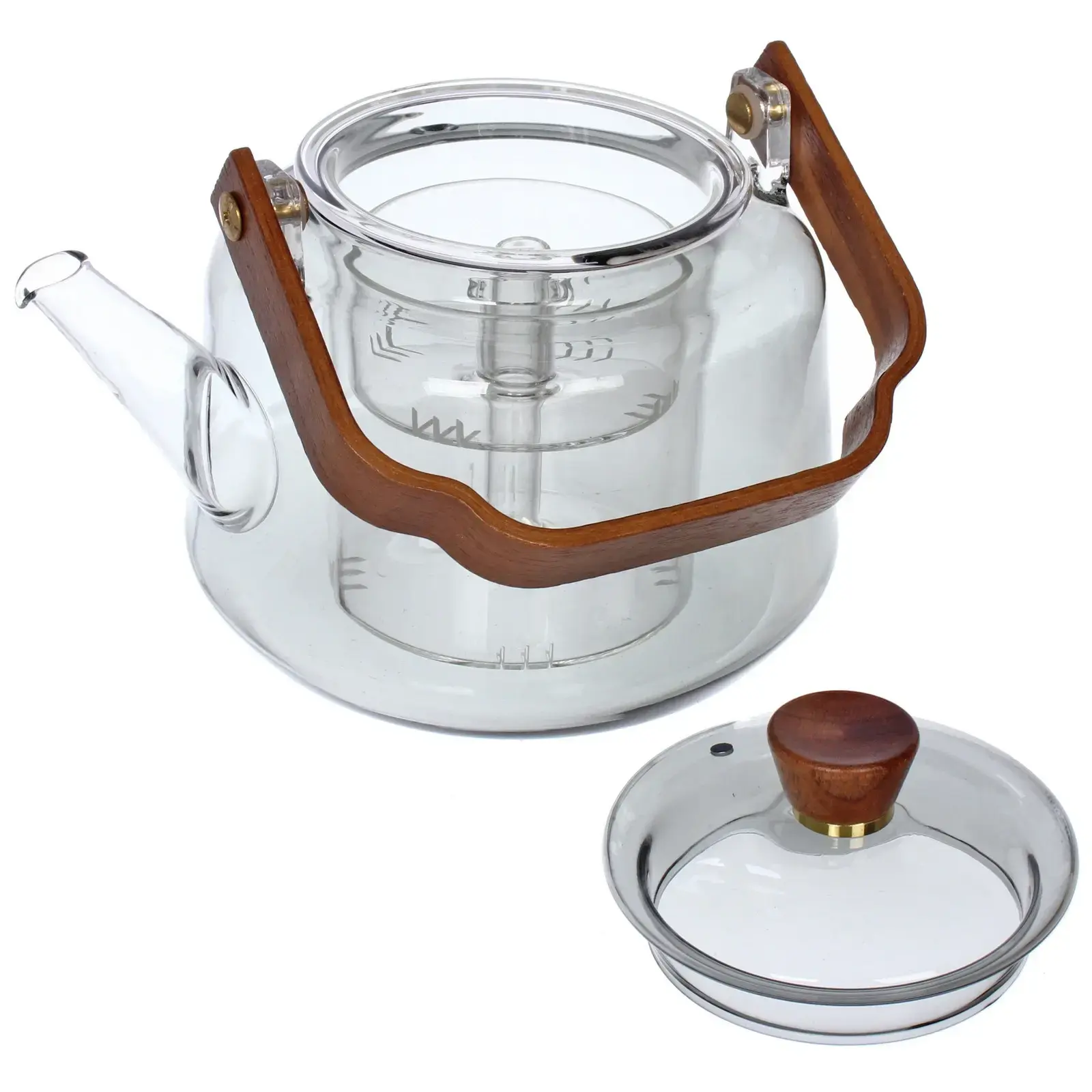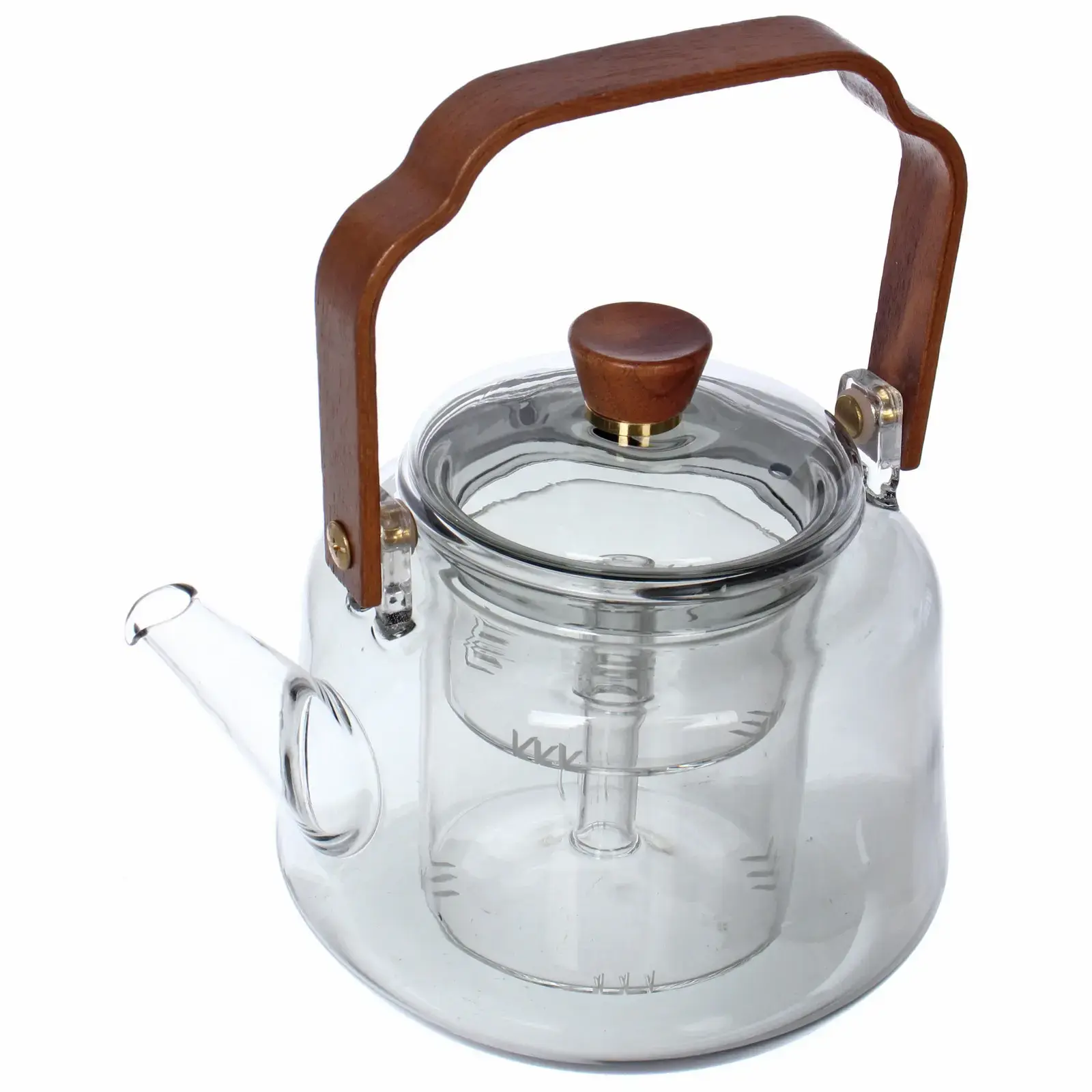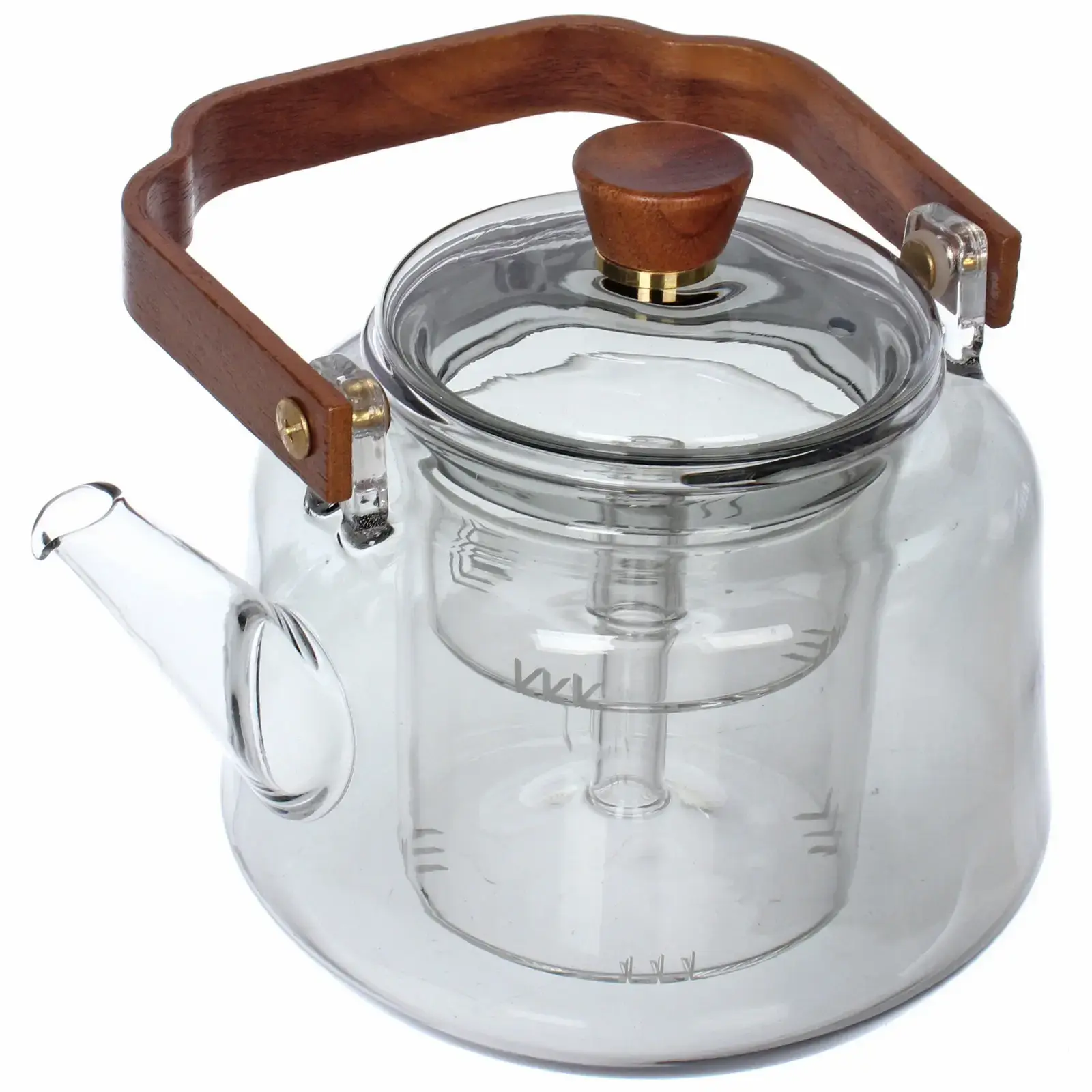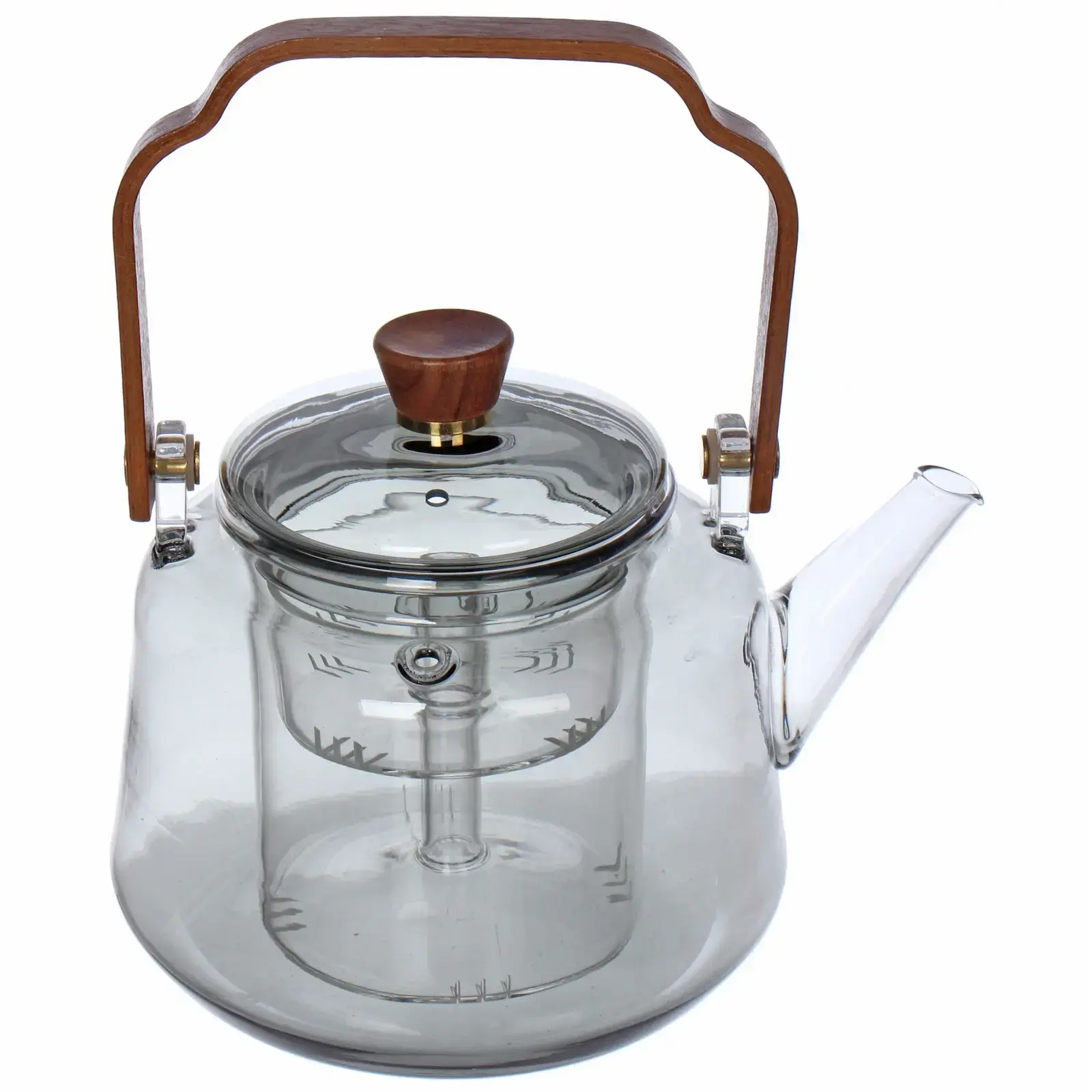 Чайник заварочный 'Хай-Тек' 1000мл, стекло/дерево, с двойным ситом