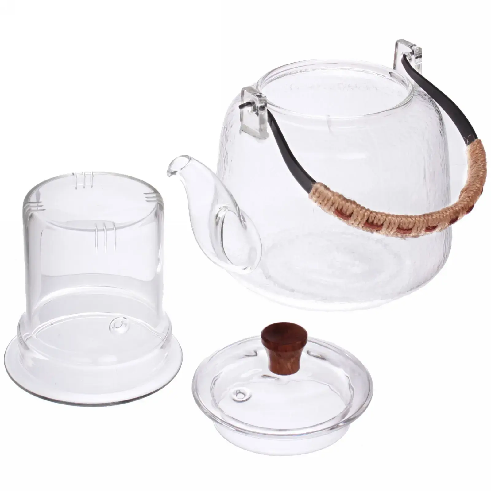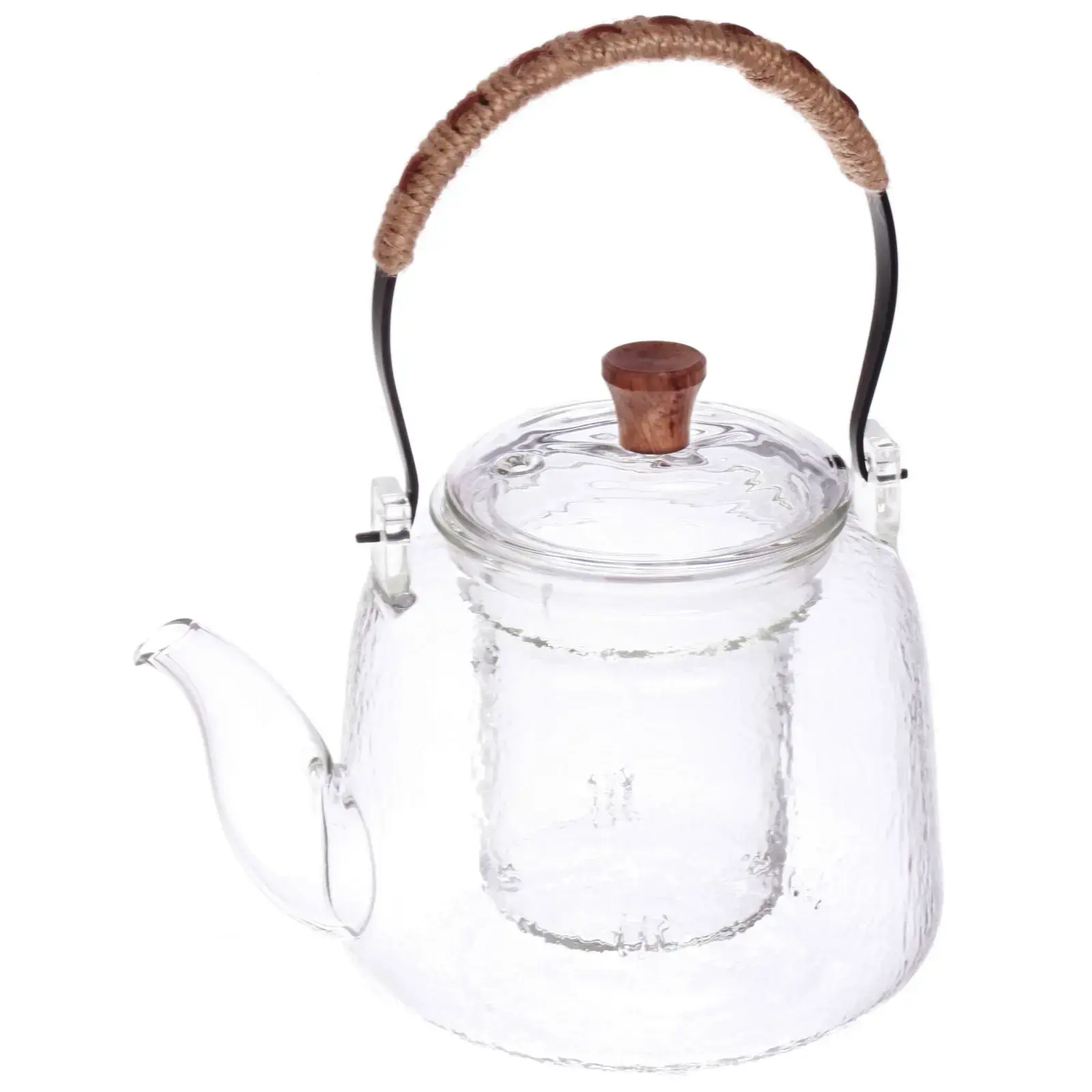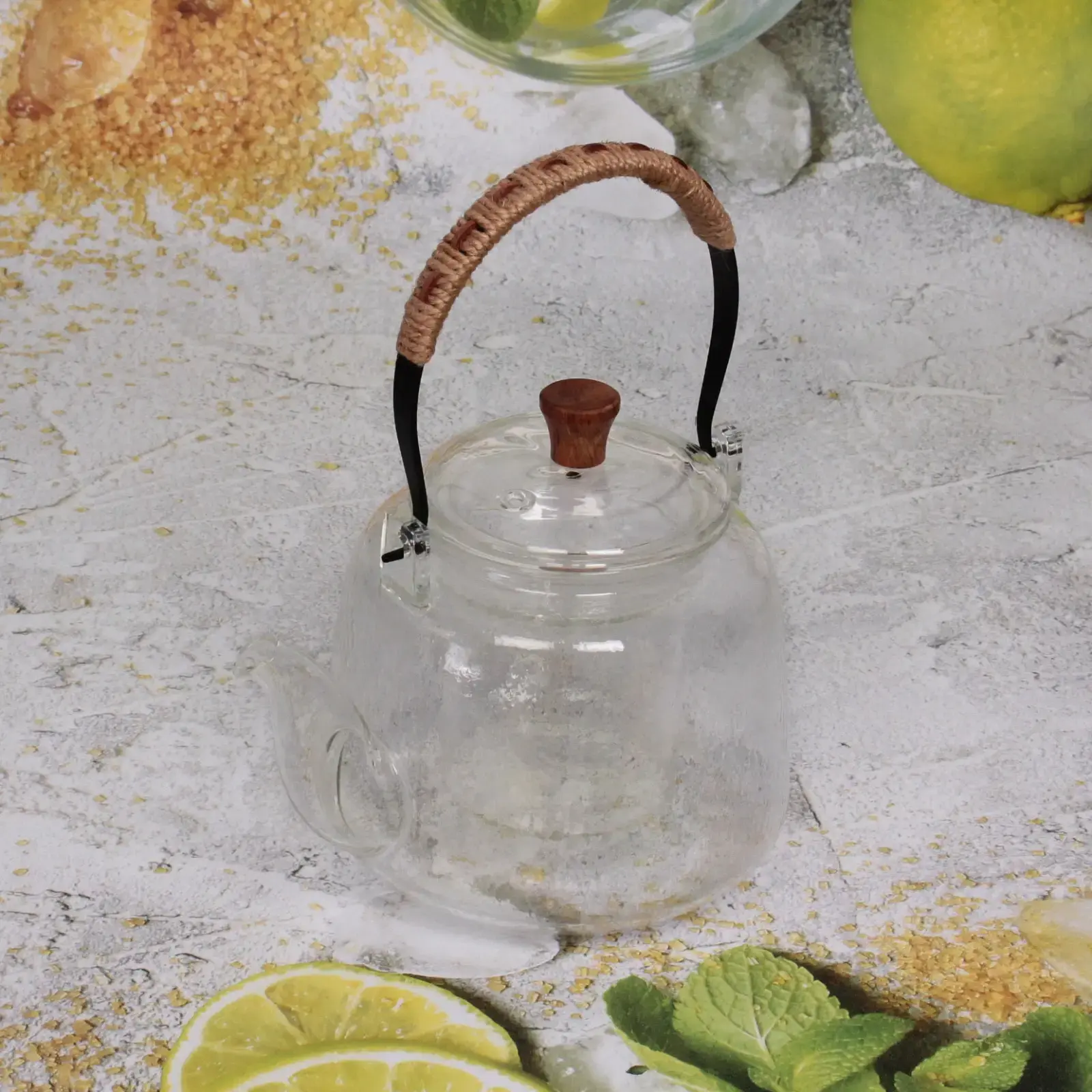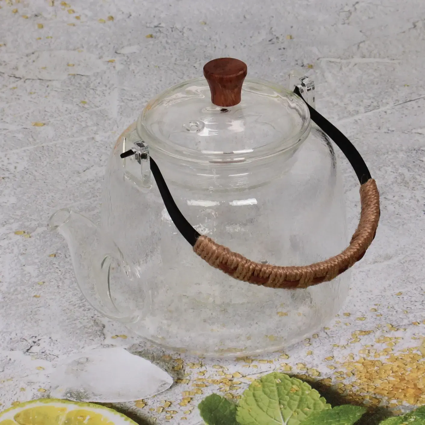 Чайник заварочный «ICE» стеклянный 1000 мл с ситом, плетёная ручка, классический дизайн