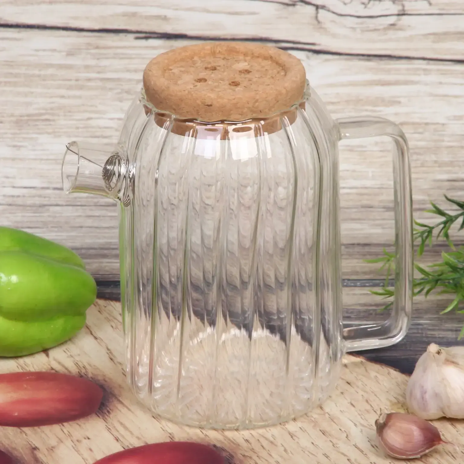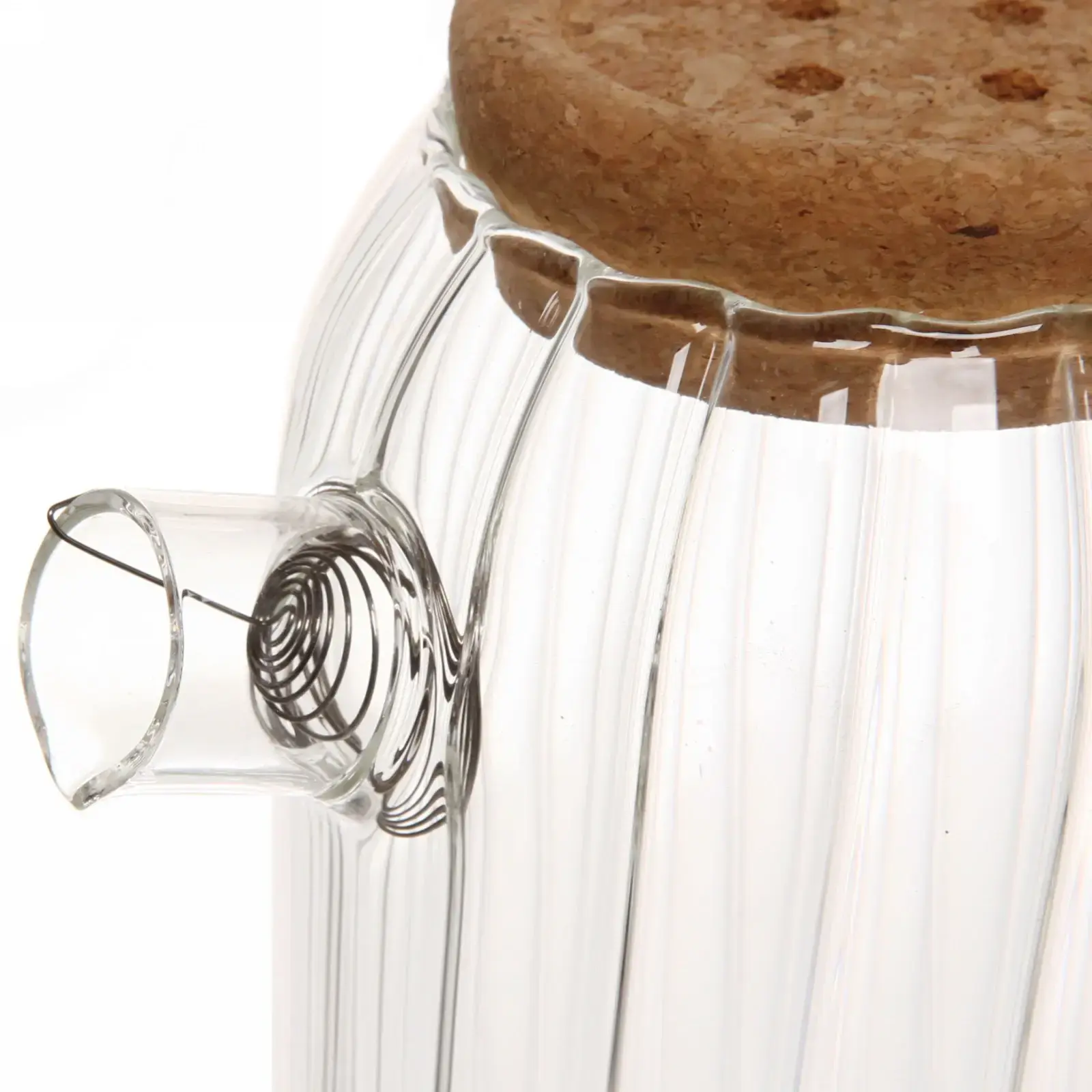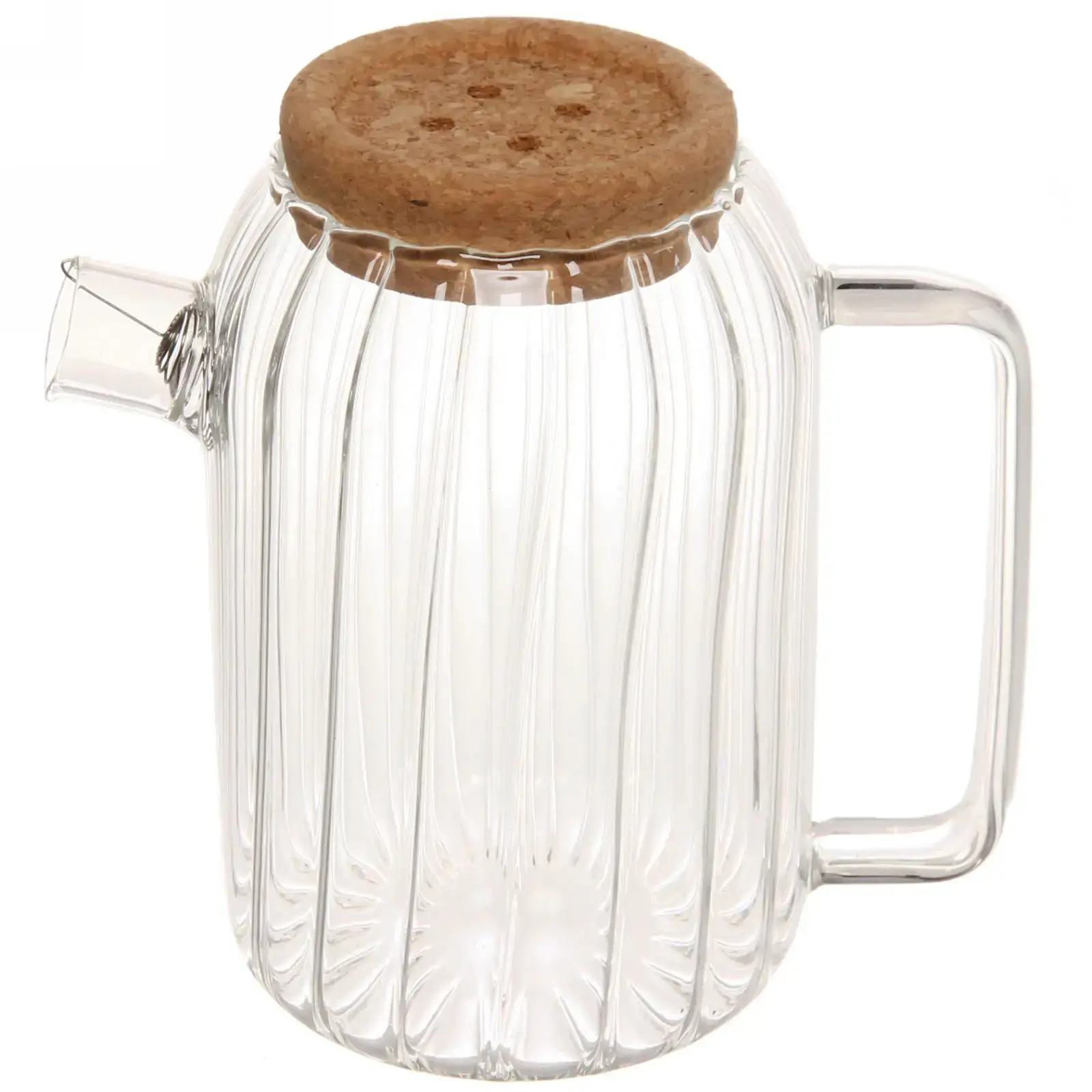 Прозрачный стеклянный чайник объёмом 1200 мл с натуральной пробковой крышкой создан для ценителей эстетики и удобства. Рифлёная поверхность обеспечивает уверенный хват, а эргономичная ручка из нержавеющей стали делает использование безопасным и комфортным.