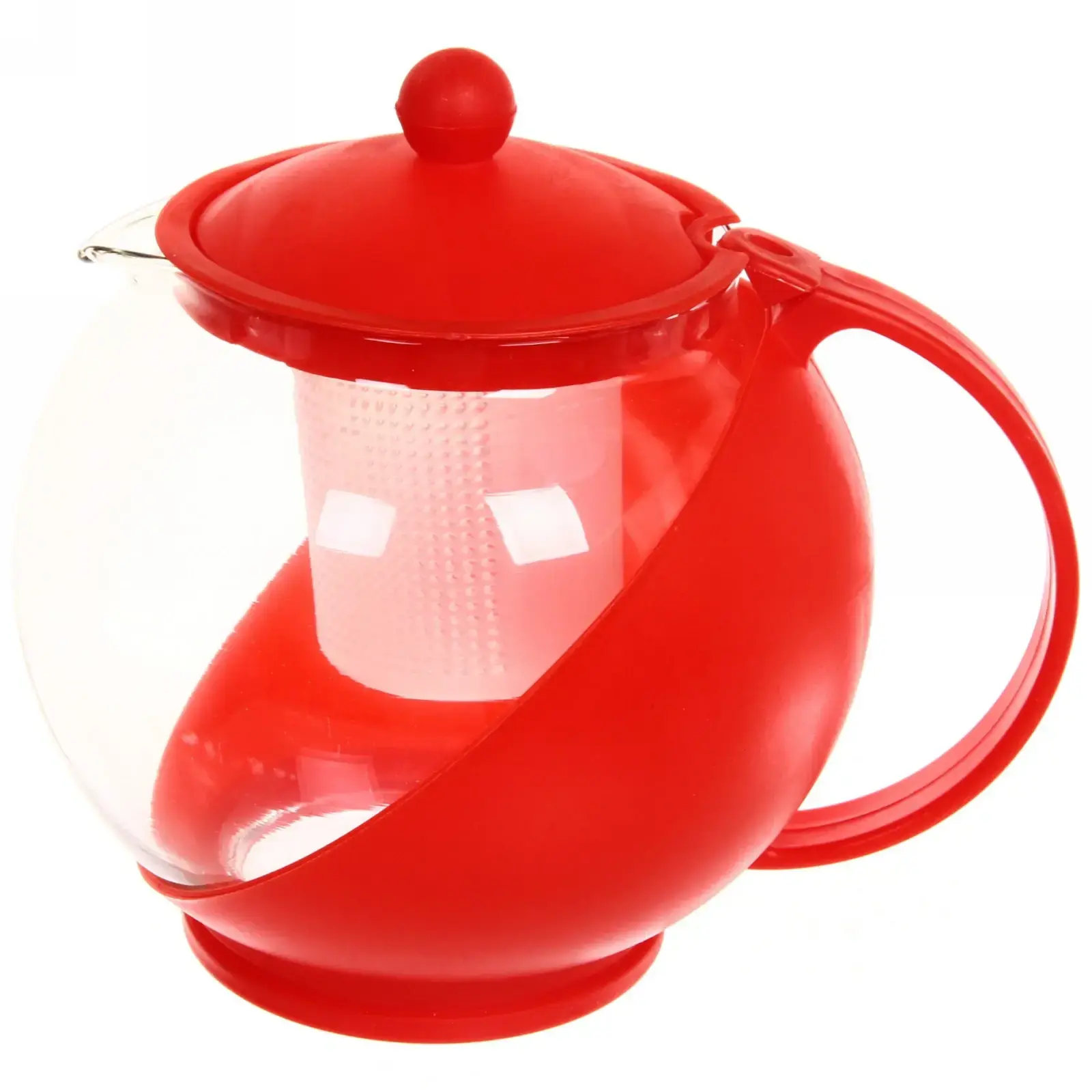 Чайник заварочный стеклянный 1250 мл с пластиковым ситом, красный, удобное заваривание