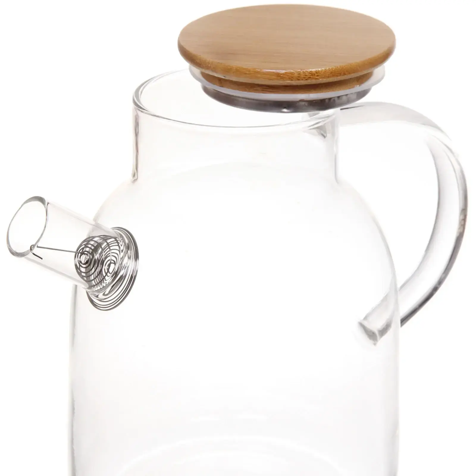 Этот стильный и функциональный чайник заварочный из стекла объемом 1800 мл с бамбуковой крышкой станет настоящим украшением вашей кухни. Его современный дизайн и высокое качество материалов обеспечивают не только эстетическое удовольствие, но и практичность в использовании. Чайник идеально подходит для заваривания различных видов чая, а также для подачи холодных напитков, таких как лимонад или iced tea.