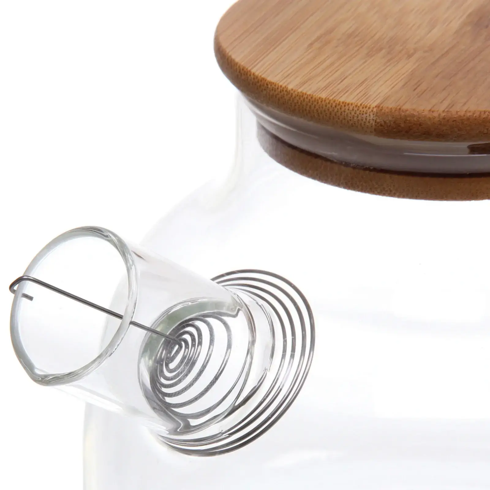 Наслаждайтесь процессом заваривания через прозрачное стекло и сохраняйте тепло напитка с натуральной бамбуковой крышкой. Фильтр-спираль в носике надёжно задерживает чаинки, обеспечивая кристально чистый настой.