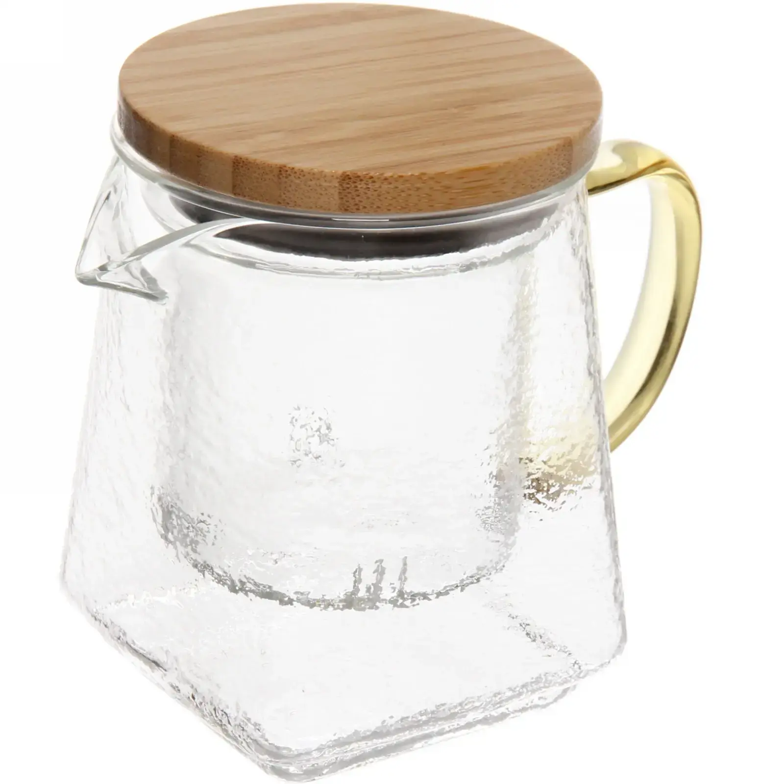 Чайник заварочный «ICE» стеклянный 500 мл с ситом и бамбуковой крышкой для чайных церемоний