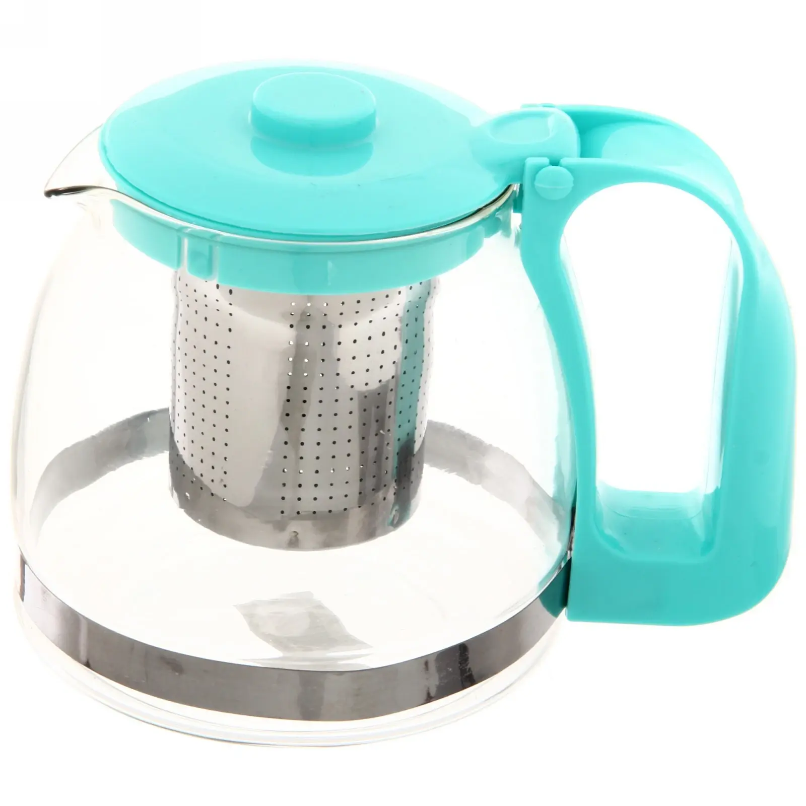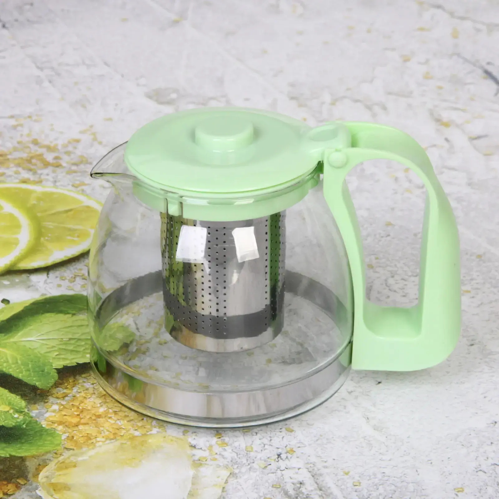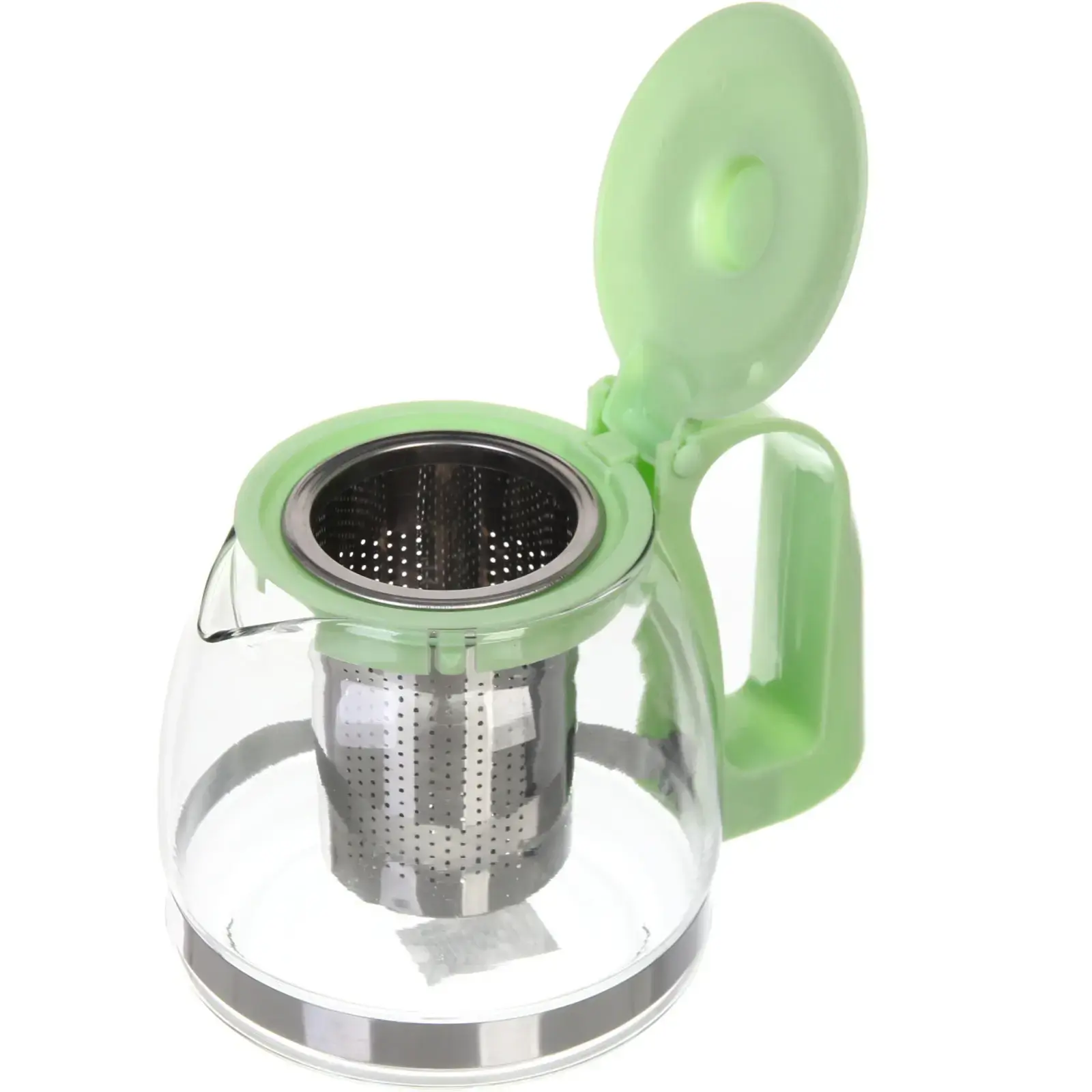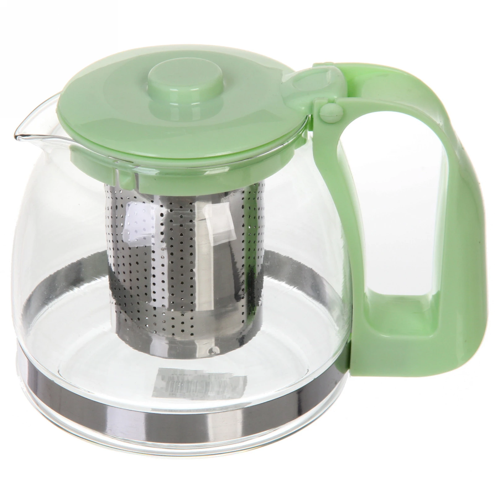 Чайник заварочный стеклянный 700мл, "Селфи", с металлическим фильтром, ручка зеленая