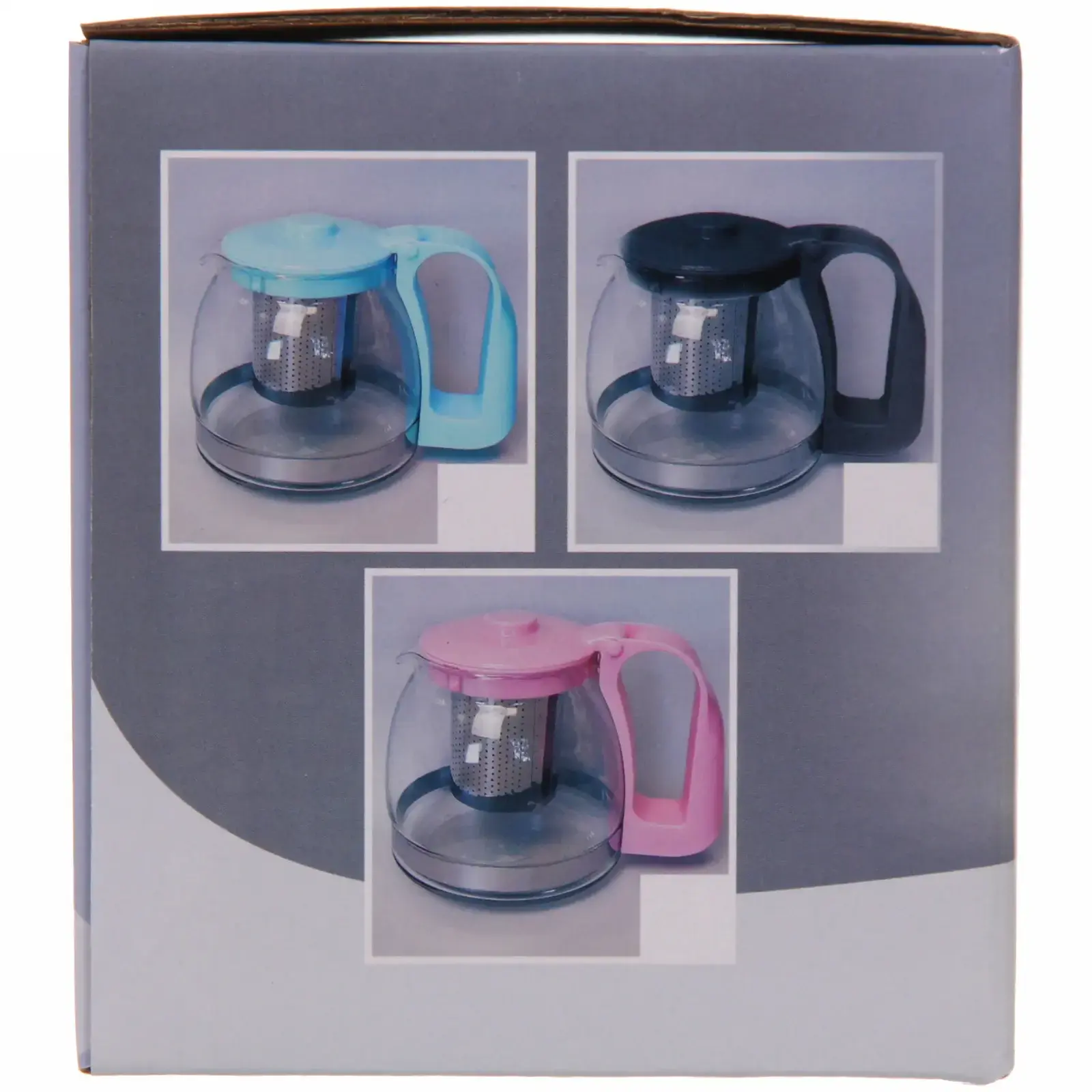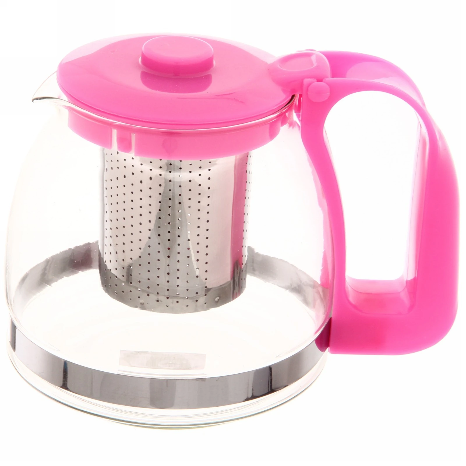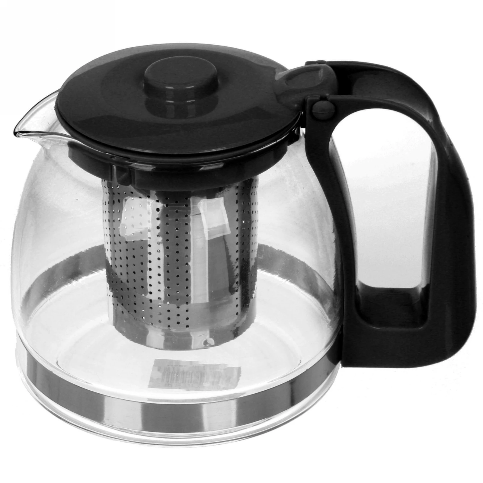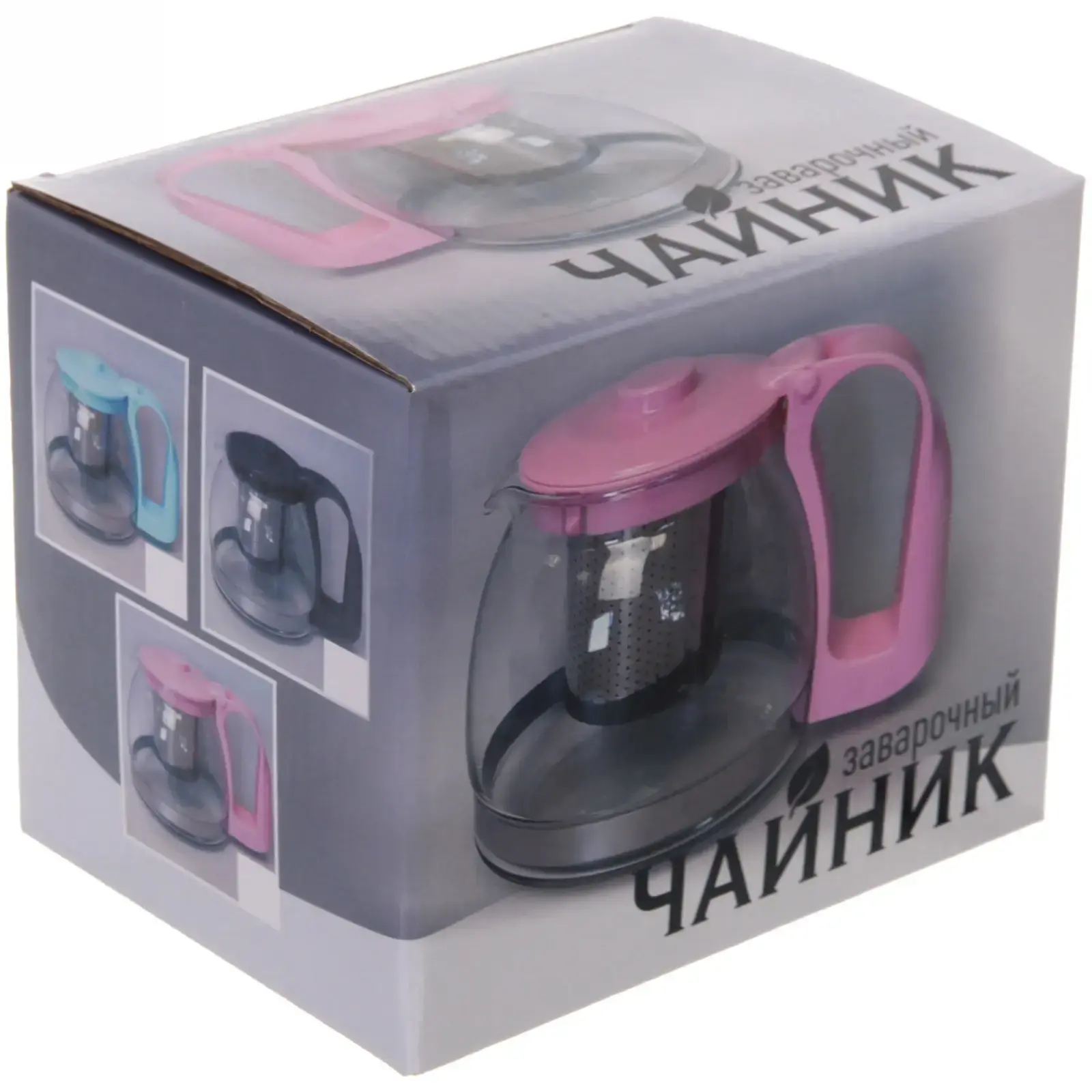 Чайник заварочный стеклянный 700мл, "Селфи", с металлическим фильтром, ручка зеленая