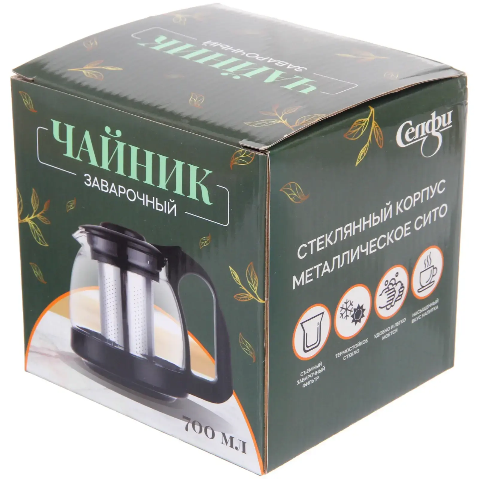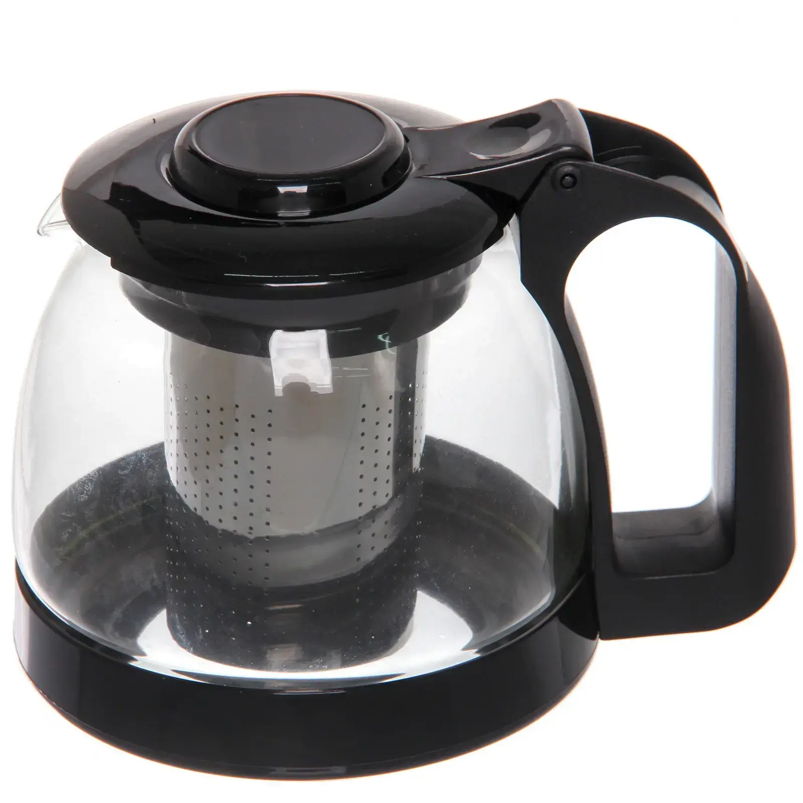 Чайник заварочный стеклянный 700мл, черный, с металлическим фильтром