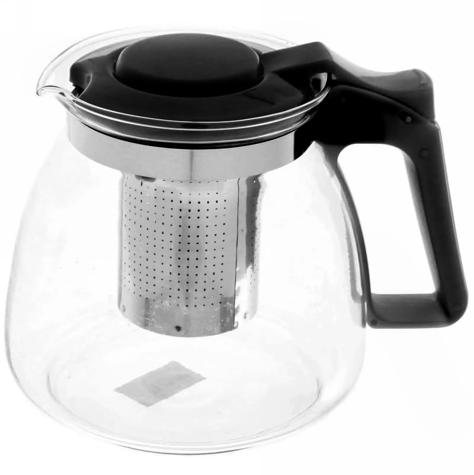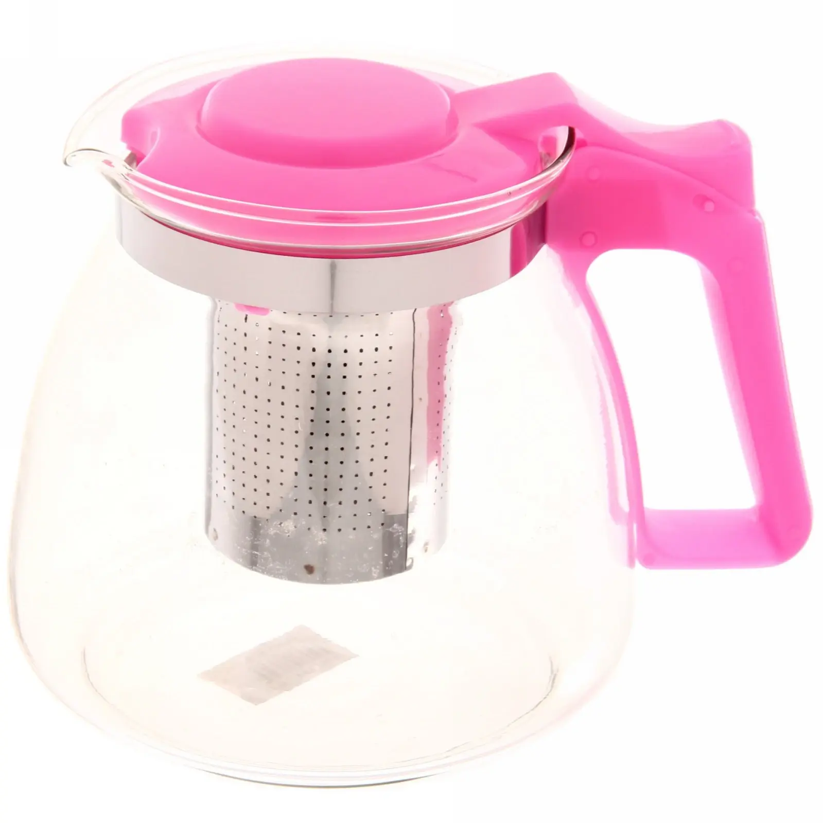 Чайник заварочный стеклянный 900 мл с металлическим ситом, съемный фильтр, цвет розовый/зеленый/черный
