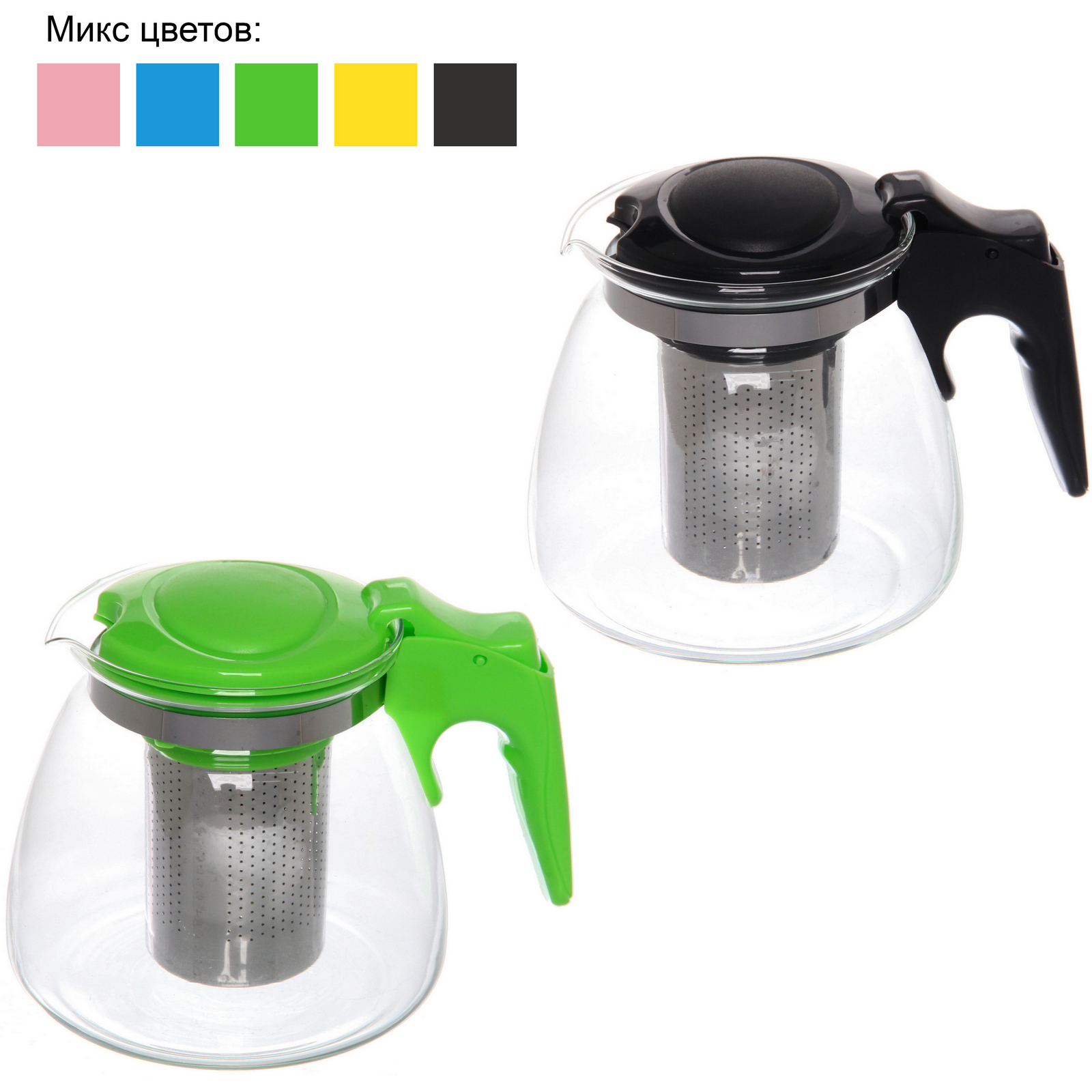 Чайник заварочный стеклянный 900мл, фильтр из нержавейки, цвета микс