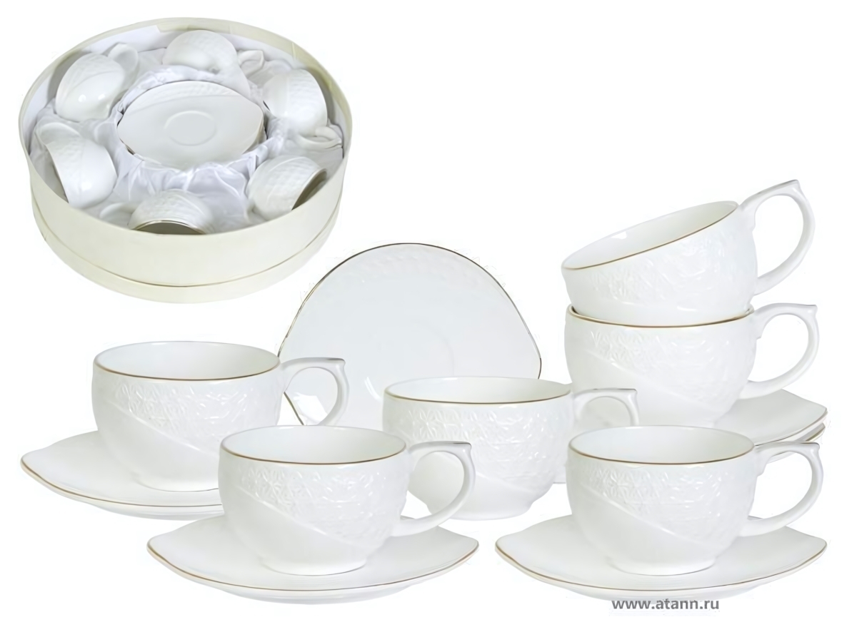 В набор входят 6 чашек объёмом 240 мл и 6 блюдец. Продуманная форма чашек и удобные ручки делают их комфортными в использовании, а подходящий объём подойдёт для чая, травяных настоев или кофе. Все элементы аккуратно упакованы в круглую подарочную коробку, которая обеспечивает надёжное хранение и транспортировку.