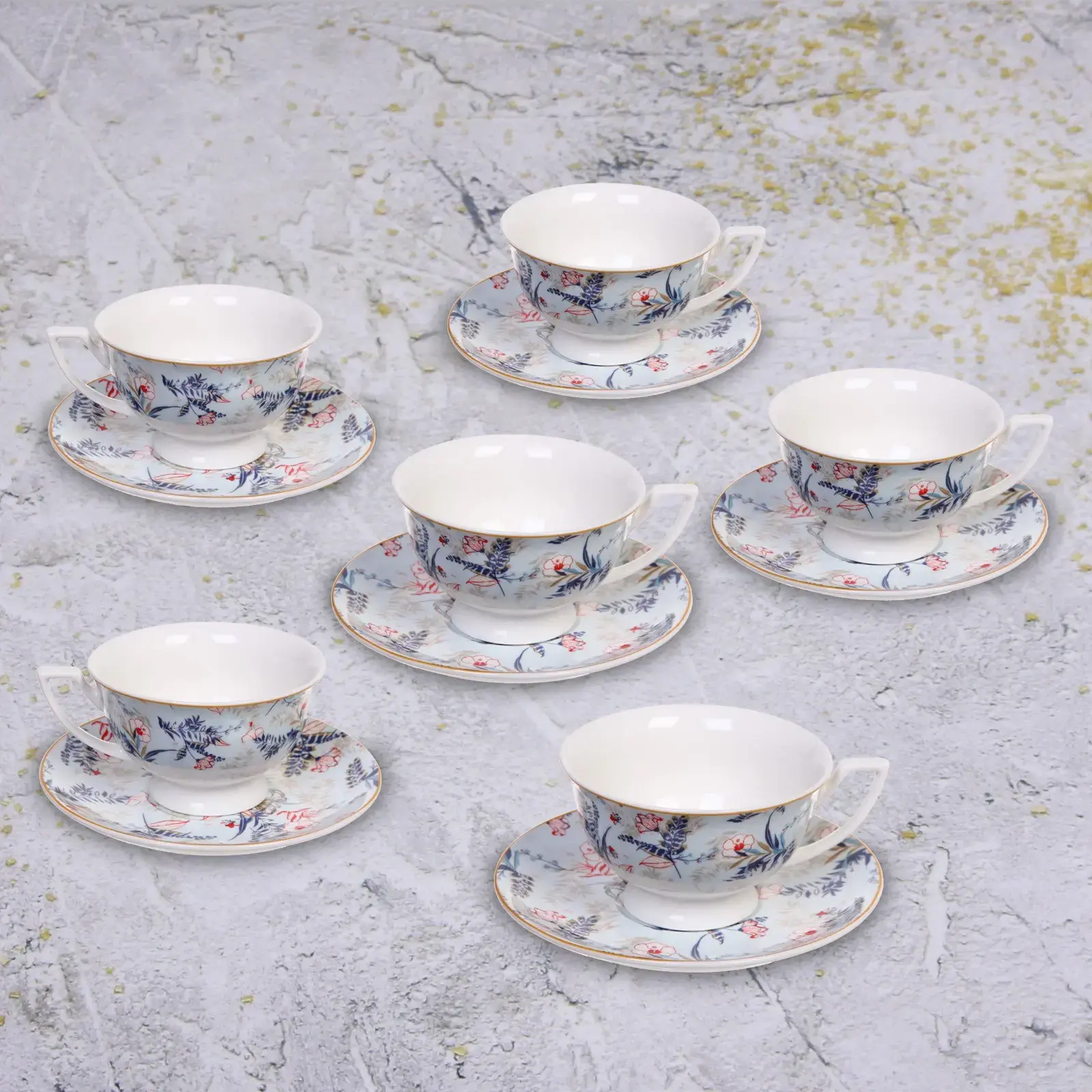 Набор из 12 предметов «Paradise» создан для тех, кто ценит уютные моменты за чашкой ароматного чая. Нежные цветочные мотивы в пастельных тонах и золотая окантовка добавят изысканности любому столу, будь то семейный завтрак или торжественный прием.