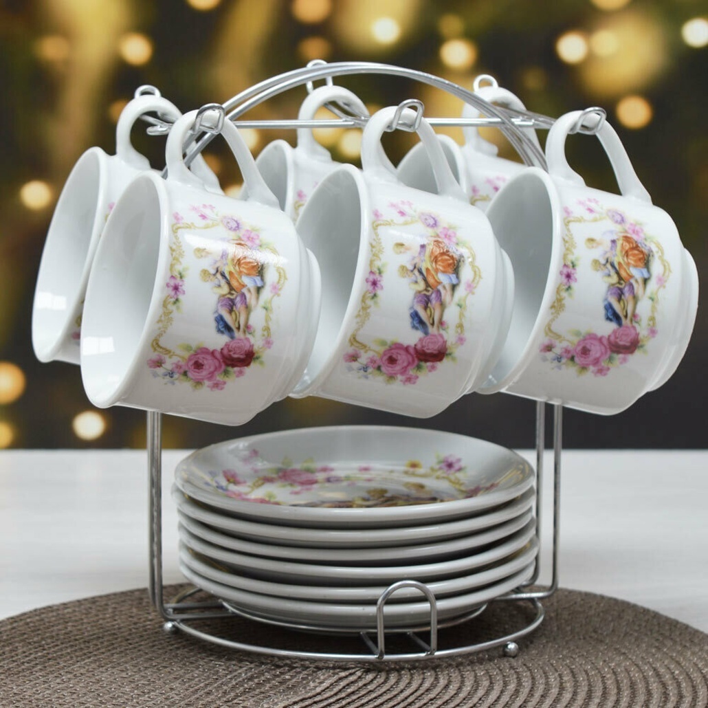 Чайный набор «R-115131» 13 предметов, керамика, 220 мл, подставка металл