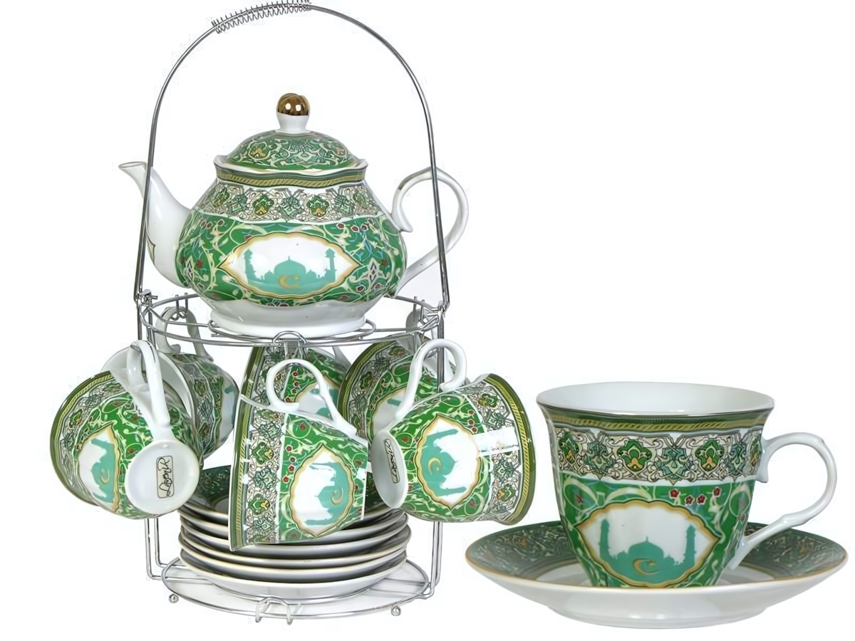 Каждый элемент набора тщательно продуман: чашки и блюдца имеют гладкую поверхность, что делает их приятными на ощупь. Декор включает традиционные восточные узоры, что придаёт набору уникальность и шарм. Размеры чашек и чайника идеально подходят для комфортного использования, а их стильный внешний вид станет предметом восхищения ваших гостей.