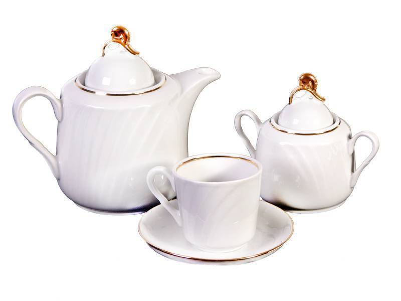 Состав набора: 14 предметов, включая чайник, сахарницу и чашки с блюдцами. Все предметы выполнены из белого фарфора, что делает их не только красивыми, но и практичными в уходе. Размеры и форма каждого элемента продуманы для максимального удобства использования. Этот сервиз станет отличным подарком для ваших близких или прекрасным дополнением к вашей коллекции посуды.