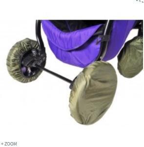 Компактные размеры позволяют хранить чехлы в кармане коляски или сумке для аксессуаров. Рекомендуем использовать комплект из 2 чехлов для полной защиты передних колес.