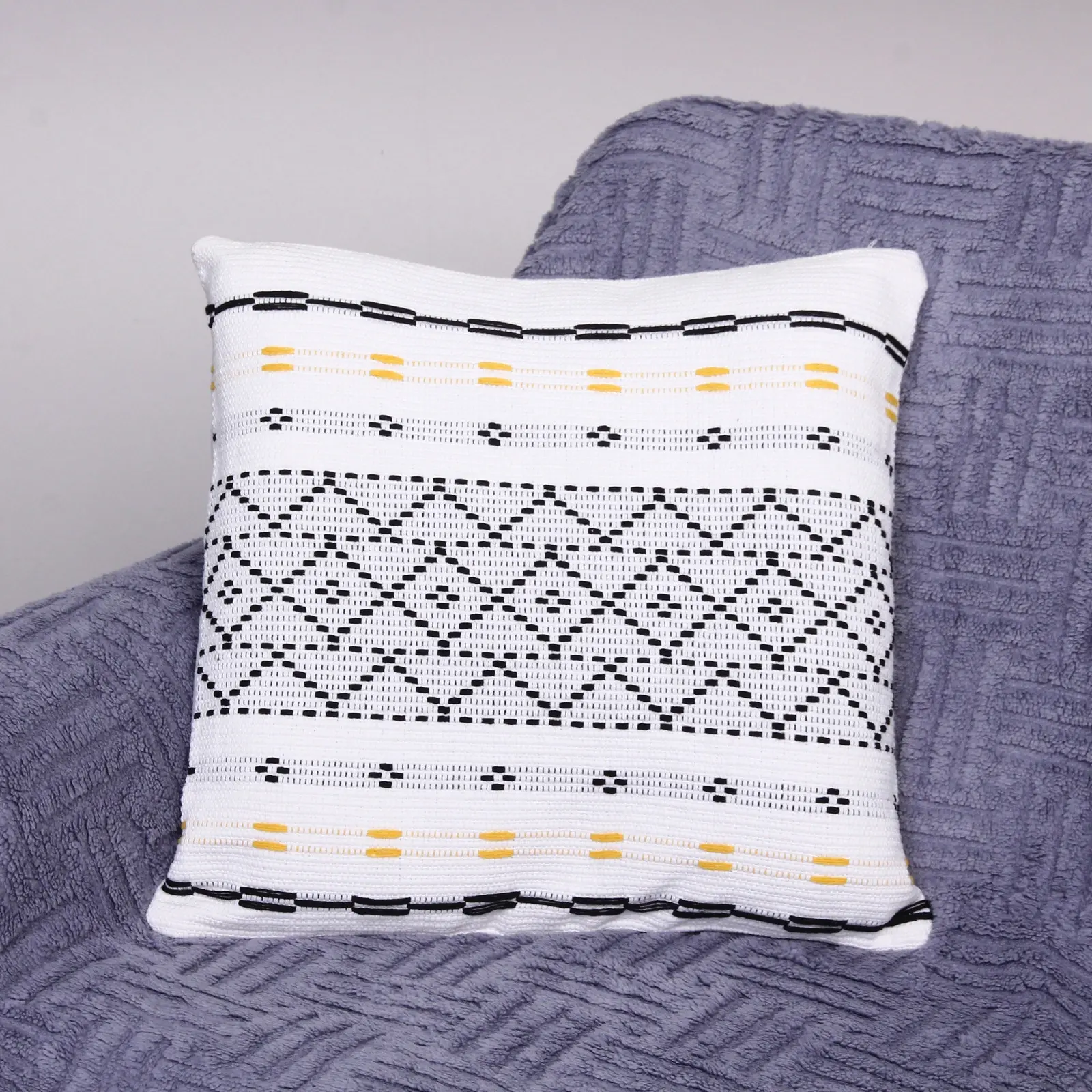 Материал: 100% полиэстер; цвет: бело-чёрный; размер: 43х43 см; легко стирается и быстро высыхает. Удобный в использовании и уходе, это решение для тех, кто ценит комфорт и стиль в домашнем текстиле.