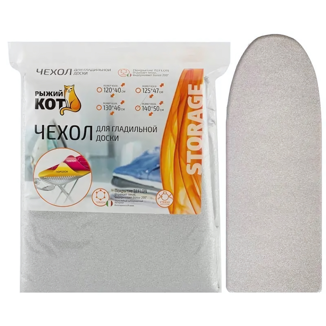 Чехол изготовлен из термостойкого дублированного материала, который сохраняет форму после многократного использования. Специальное антискользящее покрытие на внутренней стороне фиксирует ткань во время работы. Доступные размеры 120x40 см, 125x47 см, 130x46 см и 140x50 см позволяют подобрать идеальный вариант для любой модели гладильной доски.