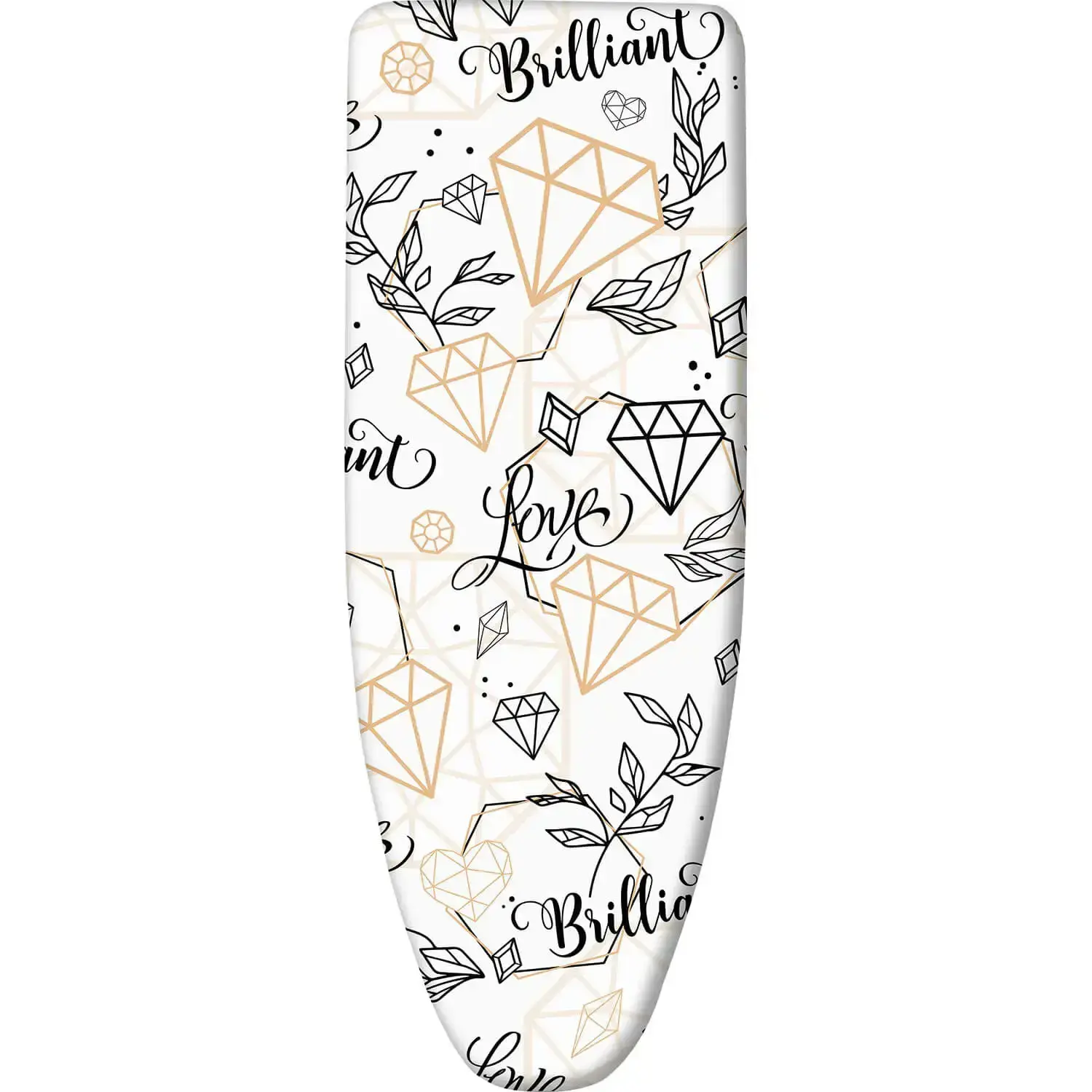 Элегантный дизайн с элементами в виде бриллиантов добавит изысканности вашей домашней обстановке. Черно-золотой рисунок на белом фоне выглядит современно и стильно. Специальная пропитка материала предотвращает скольжение вещей во время глажки.