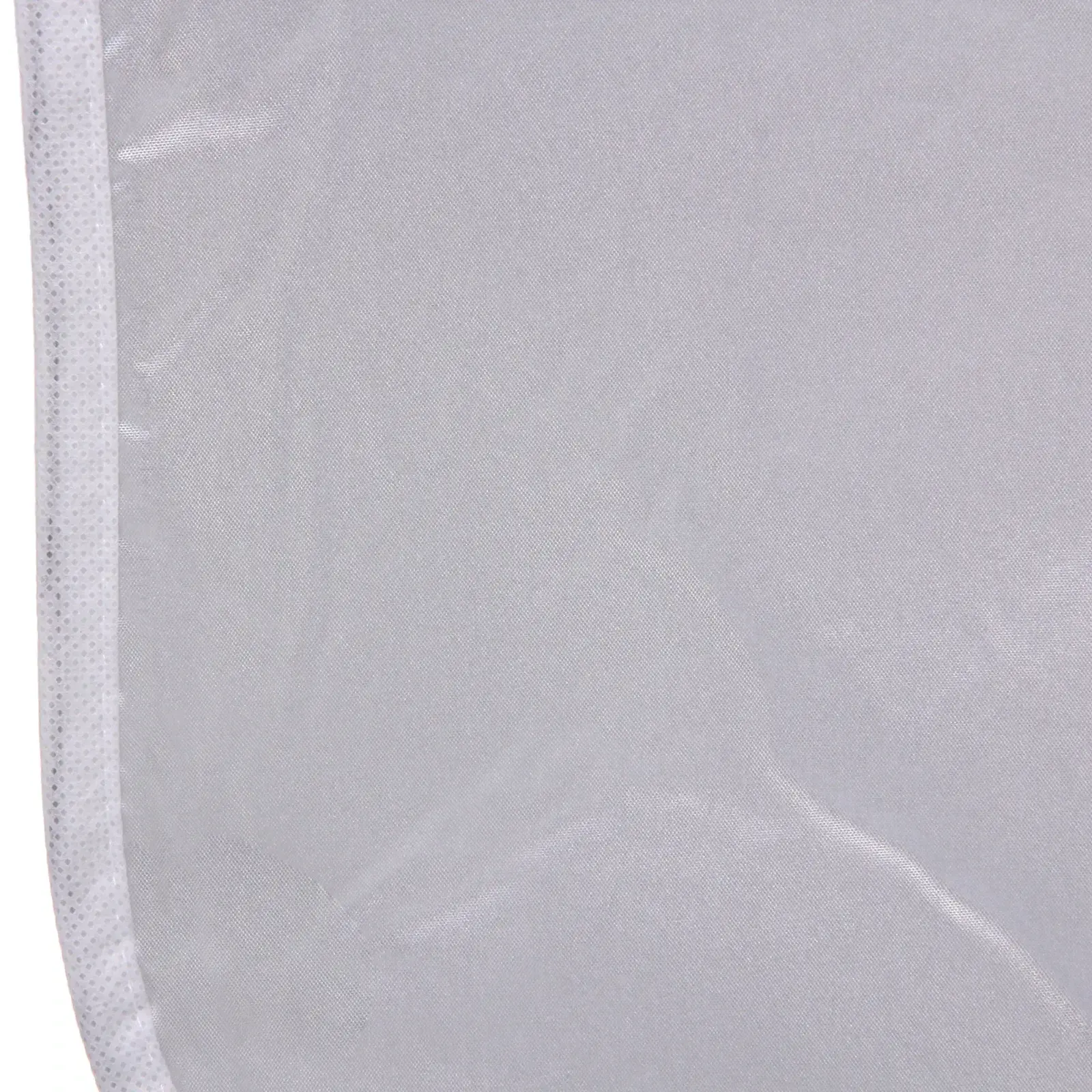 Чехол изготовлен из высококачественного полиэстера серебристого цвета, который устойчив к деформации и сохраняет презентабельный внешний вид долгое время. Фиксируется с помощью надежного шнура, что гарантирует плотную посадку на доску размером до 130х50 см.