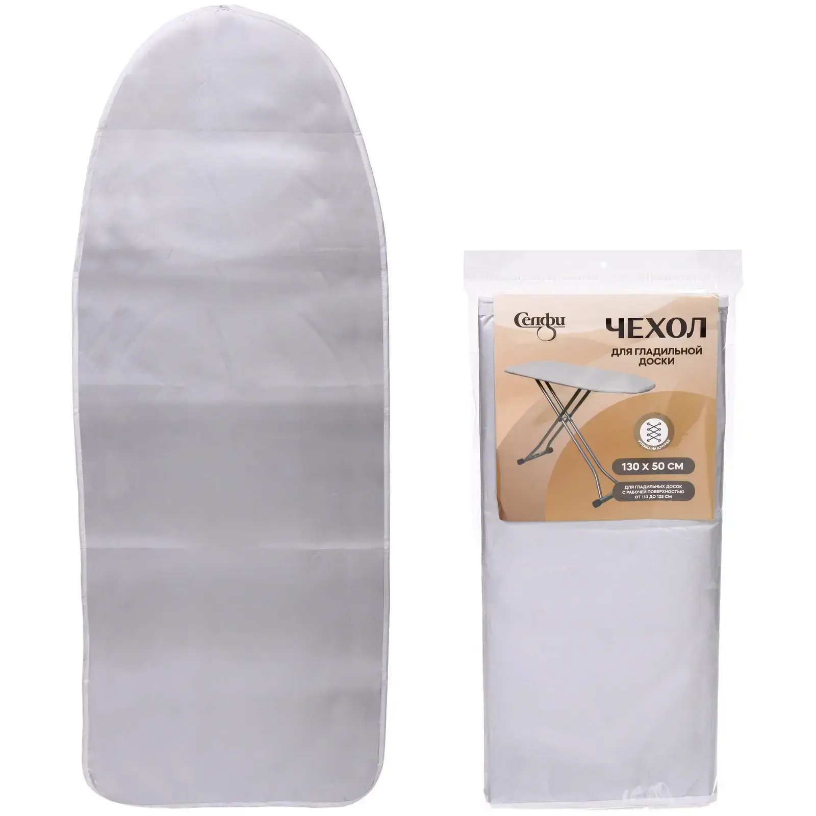Практичный размер (130х50 см) подходит для большинства стандартных гладильных досок. Специальная форма с закругленными краями обеспечивает полное покрытие рабочей поверхности.