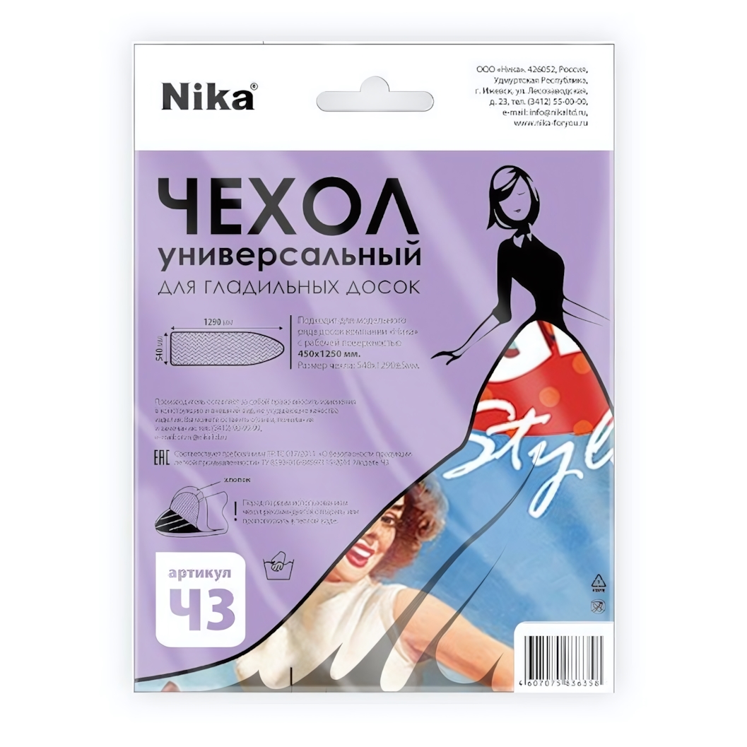 Чехол выполнен из плотной бязи, устойчивой к воздействию температуры. Размер 1290х540 мм рассчитан с учетом удобной посадки на доски стандартного формата. Это практичный выбор для тех, кто ценит аккуратность, долговечность и удобство в бытовых мелочах.