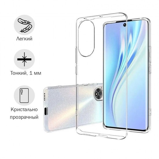 Чехол для Honor 50 силиконовый прозрачный 1 мм защищает от пыли и грязи