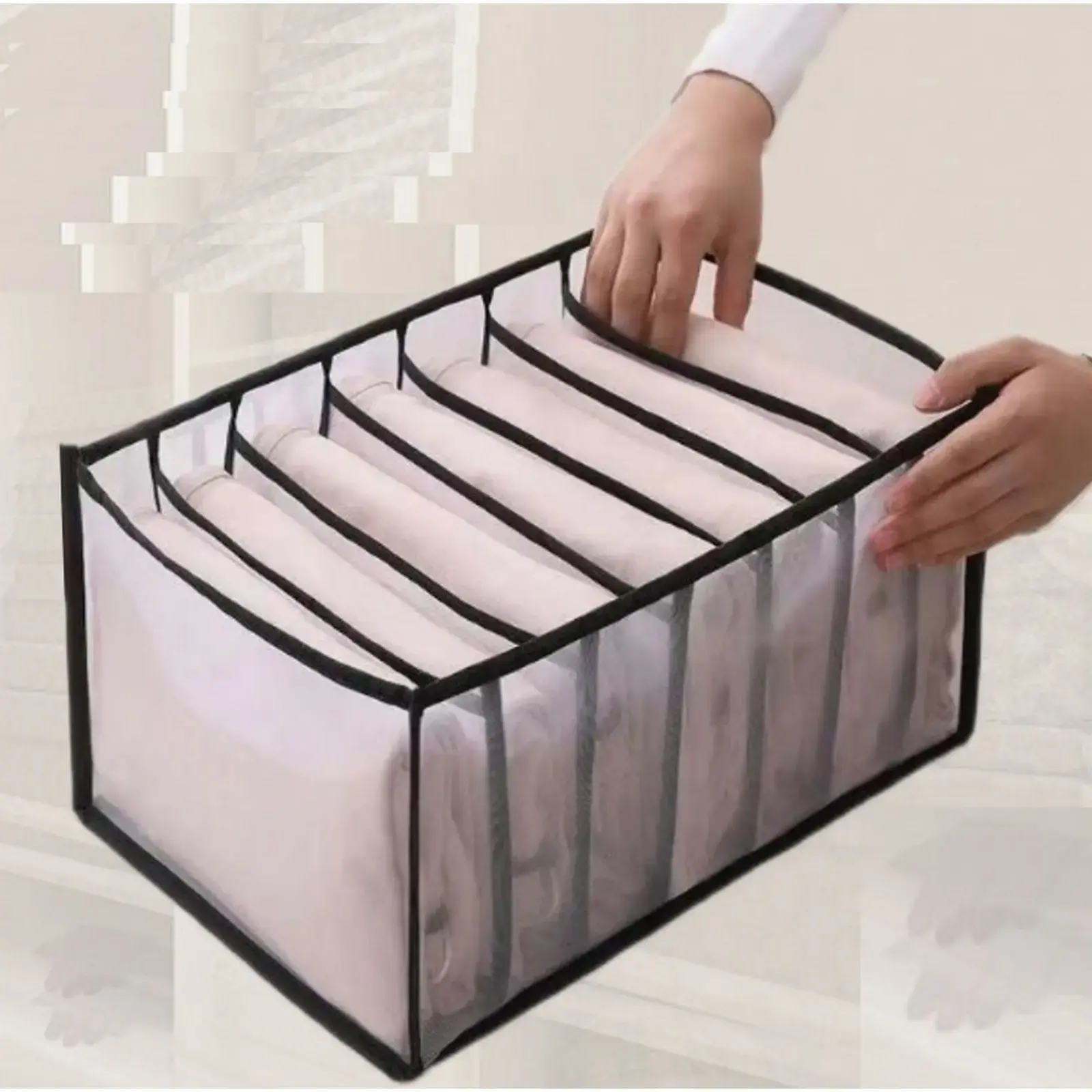 Этот органайзер идеально подходит для хранения текстильных изделий, таких как одежда, белье или аксессуары. Он имеет 7 секций, что позволяет удобно распределить вещи по категориям. Благодаря прозрачным стенкам вы всегда будете видеть содержимое, не открывая органайзер. Его размеры 36 см в длину, 24 см в ширину и 20 см в высоту делают его компактным и удобным для размещения в шкафу или на полке.
