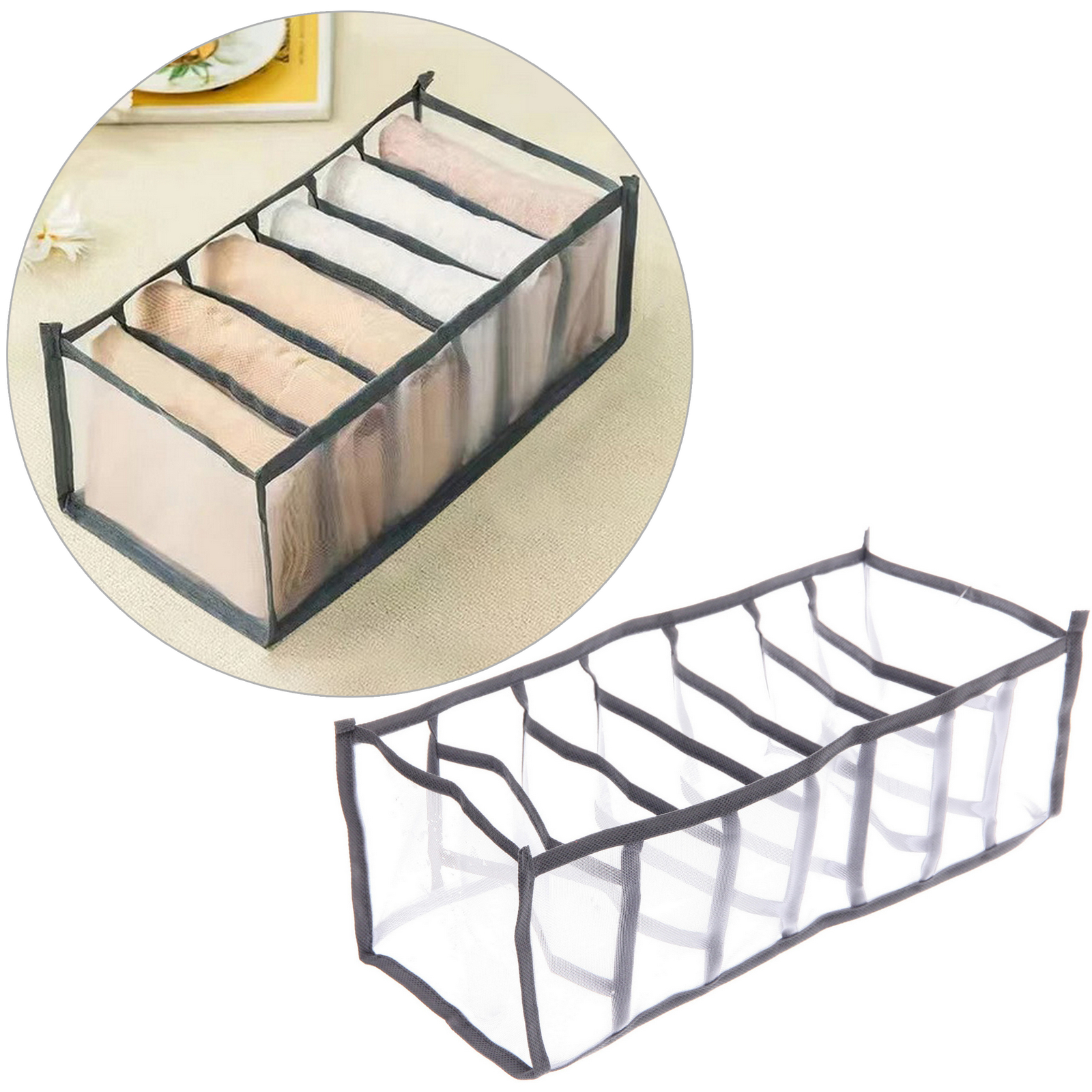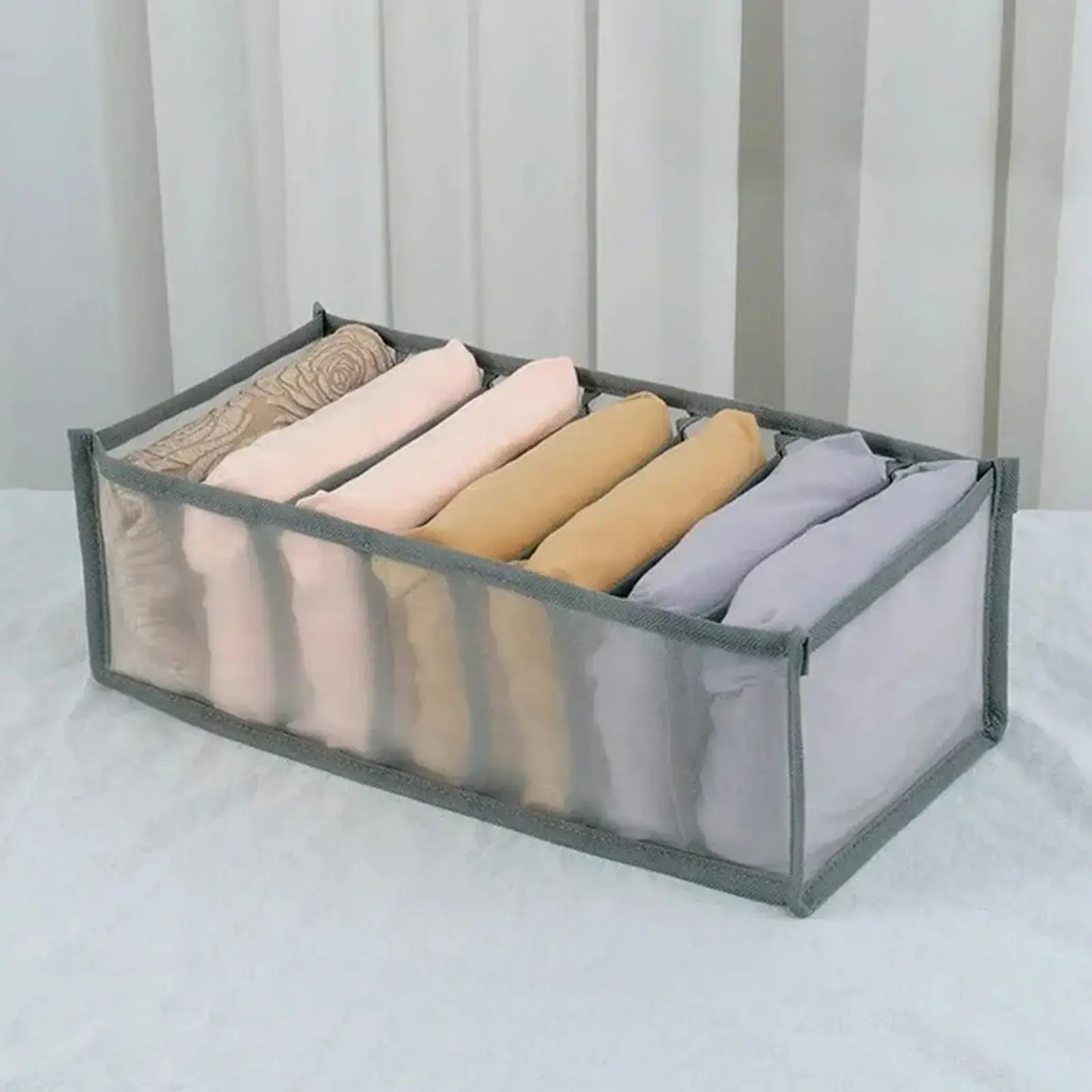 Этот органайзер идеально подходит для хранения различных мелких предметов, таких как носки, нижнее белье, аксессуары или игрушки. Благодаря 7 секциям вы сможете легко организовать свои вещи и быстро находить нужное. Прозрачные стенки позволяют видеть содержимое, что делает использование органайзера еще более удобным.