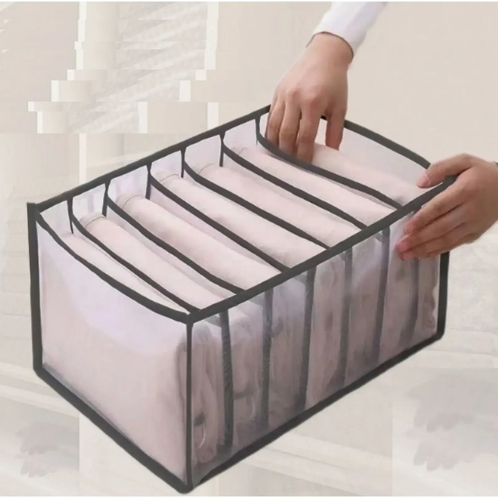 Этот органайзер имеет 7 секций, что позволяет удобно распределить вещи по категориям. Он идеально подходит для хранения одежды, постельного белья, аксессуаров и других мелочей. Благодаря прозрачным стенкам вы всегда будете видеть содержимое, что упрощает доступ к нужным предметам.