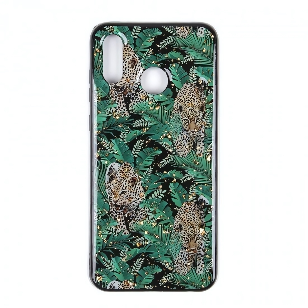 Представляем вам чехол для Huawei Honor Play, который сочетает в себе стильный дизайн и надежную защиту. Этот чехол выполнен из гибкого полиуретанового материала, который обеспечивает комфортное использование и долговечность. Благодаря уникальному тропическому узору с изображениями леопардов и зелеными листьями, ваш телефон будет выглядеть ярко и привлекательно.