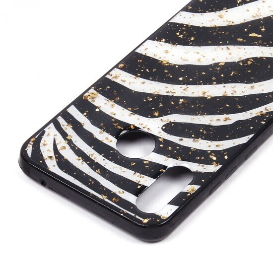 Подарите своему смартфону уникальный внешний вид и надежную защиту с тонким чехлом из гибкого термополиуретана (ТПУ). Яркий зебровый принт с золотыми блестками выделяет ваш телефон из толпы и сохраняет свой первоначальный вид, ведь рисунок нанесен изнутри корпуса и не стирается со временем.