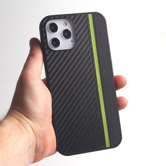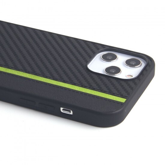 Чехол разработан специально для iPhone 12 Pro Max с учётом всех конструктивных особенностей. Усиленные углы поглощают удары при падении, а бортик высотой 1.2 мм защищает экран от царапин при размещении на поверхности. Стилизация под карбон и кожаные вставки создают имидж премиального аксессуара.