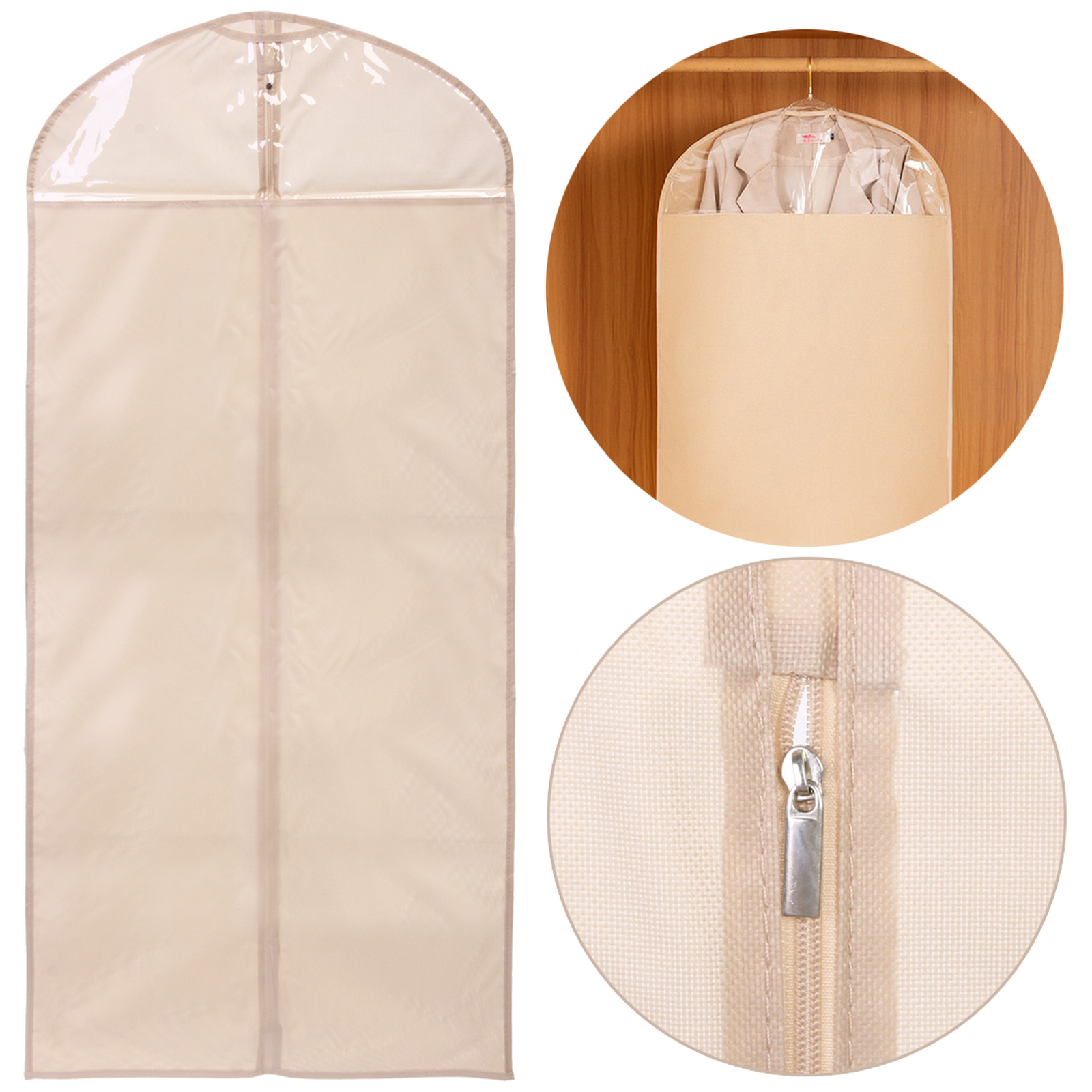 Чехол предназначен для хранения и транспортировки одежды. Он легко открывается благодаря застежке-молнии, что позволяет быстро получить доступ к содержимому. Прозрачная верхняя часть чехла дает возможность видеть, что находится внутри, что упрощает выбор нужной вещи. Этот чехол идеально подходит для использования в шкафу, на вешалке или во время поездок.