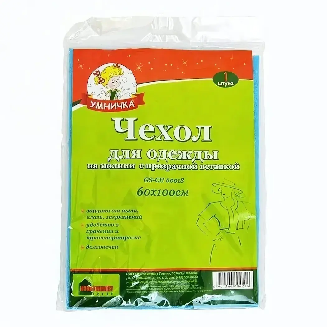 Чехол для одежды «Умничка» с молнией 60х100 см, защита от пыли и влаги, прозрачная вставка