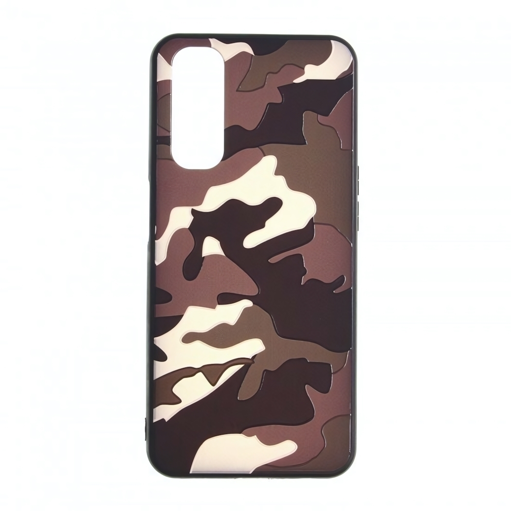 Подходит для модели Realme 7, материал исполнения — термополиуретан в камуфляжных оттенках (коричневый, бежевый, черный). Чехол обеспечивает надёжную защиту задней крышки и боковых граней, амортизируя удары и предотвращая появление потертостей.