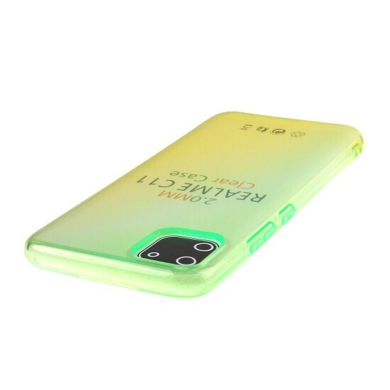 Размеры чехла идеально соответствуют модели Realme C11, а его прозрачный дизайн с градиентом от зеленого к желтому цветам делает его привлекательным аксессуаром. Защитите свой телефон с помощью этого качественного и стильного чехла!